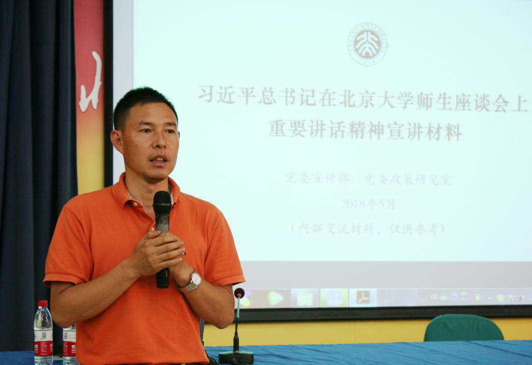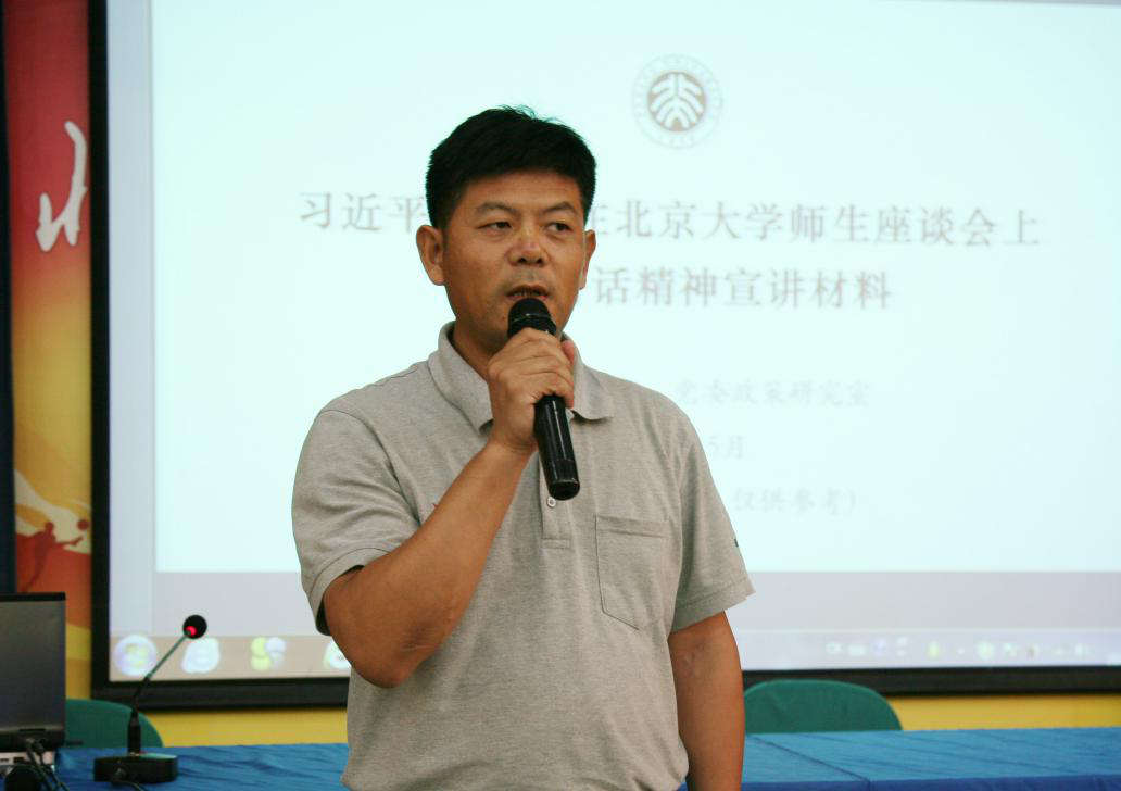 体育教研部书记张锐教授传达了习近平总书记在北大师生座谈会上的重要讲话精神。张锐书记首先介绍了总书记在北大调研的过程和总体情况;随后带领全体师生通篇解读了总书记在北京大学师生座谈会上的讲话全文,从文中“一个根本任务”、“两个标准”、“三项基本工作”、“四点希望”展开重点学习和理解总书记讲话的主要内容,并表示总书记的这篇重要讲话具有里程碑意义,这是党的十九大以来总书记面向高等教育乃至整个教育战线作出的首次重要讲话,对新时代的高等教育和高校师生提出了系统的、鲜明的要求,我们都应该深刻领悟到其中蕴含的国之精神;张锐书记最后强调,我们不仅要充分认识深入学习贯彻习近平总书记重要讲话精神的重大意义,更要切实增强学习贯彻的自觉性主动性,做一名以身作则率先垂范立言立行的带头人。