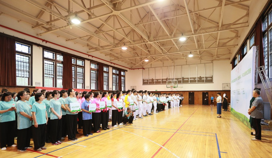 6月9日上午,由北京大学武术研究中心、体育教研部和校工会主办的第三届“武悦同人杯”太极拳交流赛在北京大学第一体育馆举行。来自学校机关、社会科学部、物理学院、公寓中心、图书馆、动力中心、会议中心、未名太极社、教工健美操社团、武术协会、杨式太极拳协会和太极拳课上的35支代表队、294名北大师生运动员参加比赛。体育教研部书记张锐教授、工会副主席刘杉杉、武术研究中心主任王东敏、武悦同人创始人赵伟诺等人出席了开幕式。