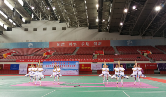 学生组喜报频传,教工组也不甘示弱。来自北京大学各个单位的21名老师(陶静、崔海媛、冯晓宇、郝淑芳、胡桂珍、徐婷、张树玲、赵妮、佟巍、刘春玉、葛江梅、金时玉、金钰佳、佟晓旭、蒋萍丽、李营、李小红、赫忠慧、刘姝、孙战龙、藏敬华)自发用业余时间组织训练,完美地完成了《悦满燕园》的组合展示,获得教工甲组全场最高分,荣获一等奖的优异成绩。本次比赛充分展现了北大教职工良好的身体素质和精神面貌,赛场上她们美丽的身影征服了所有的裁判。