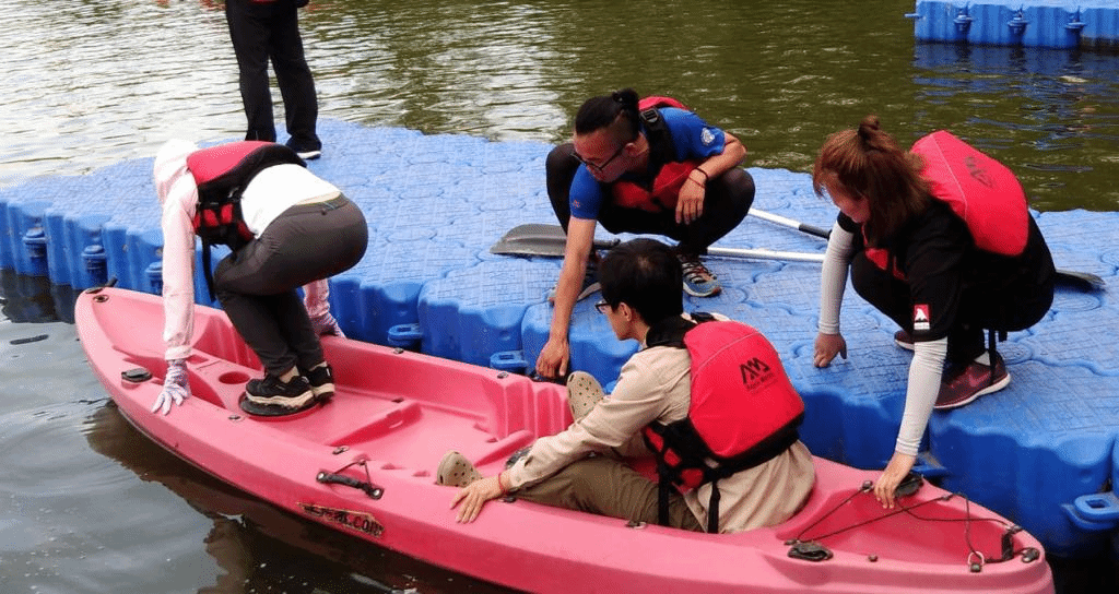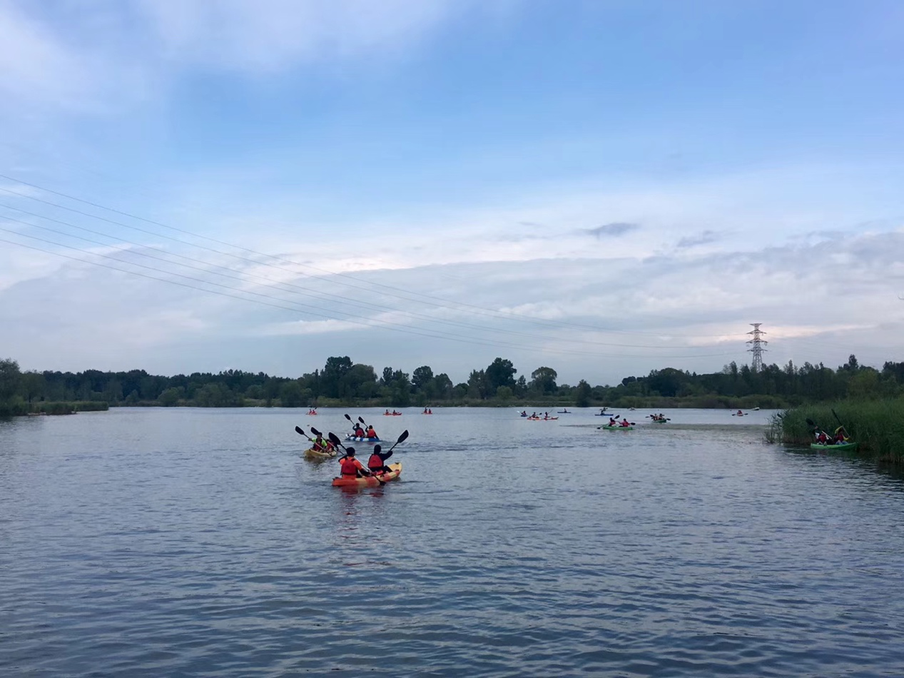 越野跑项目结束后,北大代表队在五分钟短暂休息后迅速开始皮划艇接力项目,并在皮划艇完成后冲刺跑1.3km前往自行车项目起点。整个皮划艇接力项目过程中,北大代表队表现出团结高效、有条不紊的比赛素养。