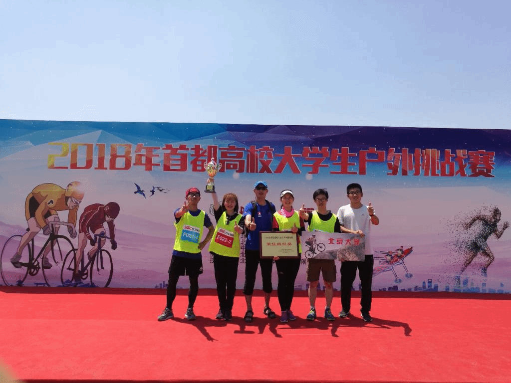 由北京市大学生体育协会主办的首都高校大学生户外挑战赛已有13年未曾举办,2018年重启此项比赛,北大体育教研部在上周临时收到比赛通知的情况下,迅速组建队伍,仅成立一周、由来自不同学院、不同年级、不同户外社团的5位同学组成的队伍,经过努力训练、科学训练,安全顺利地完成了大强度的所有比赛项目。
