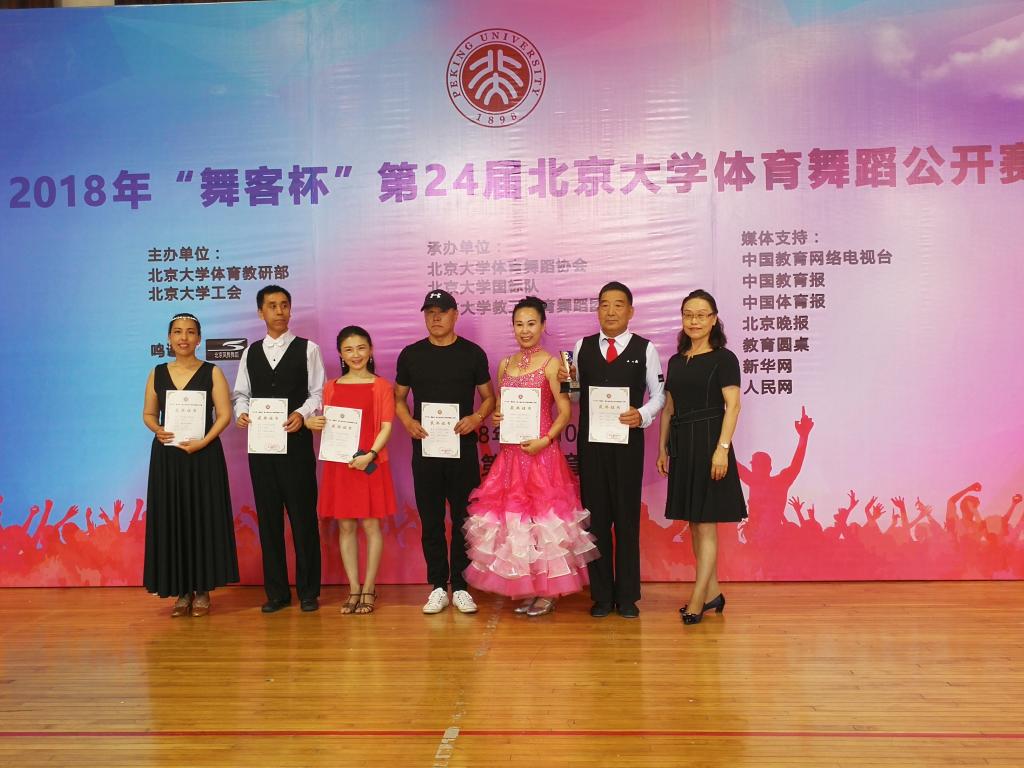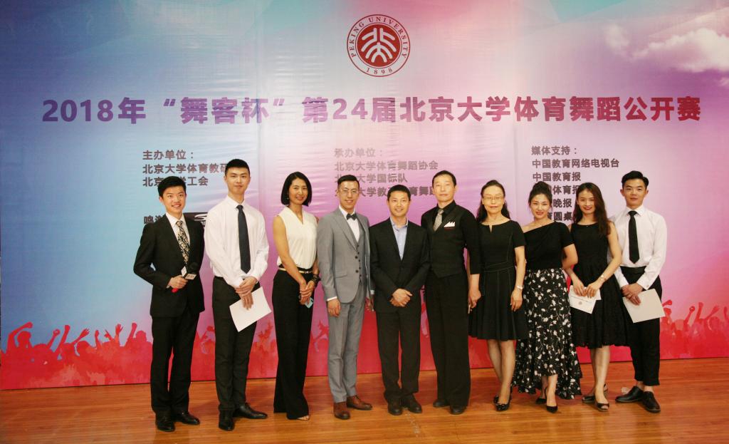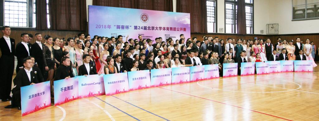 6月10日,由北京大学体育教研部和校工会联合主办的第24届“舞客杯”体育舞蹈公开赛在北大第一体育馆举行。来自本学期体育舞蹈必修课程班、北大体育舞蹈代表队、北大学生体育舞蹈协会、北大教工体育舞蹈团、清华大学工会体育舞蹈协会、北京体育大学、北京印刷学院、中国劳动关系学院、中央民族大学、北京交通大学、北京林业大学、北京博士后艺术团舞蹈协会、北京健美操体育舞蹈协会、中国空间技术研究院、BallroomCamp、千夜舞蹈等18支队伍共近300名选手参加37个组别的角逐,北京大学体育教研部书记张锐教授、舞客杯发起人体育教研部吴定锋副教授,凤舞舞蹈用品总经理张玉凤等嘉宾出席了开幕式。