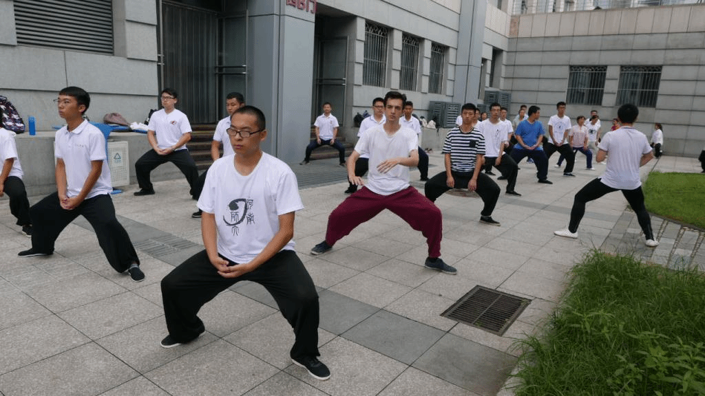 研习营期间,邱德拔体育馆外太极拳晨练场景
