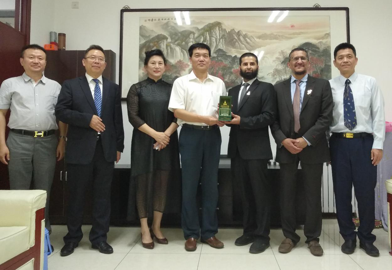 郝光安所长向阿卜杜勒·阿齐兹国王大学中国文化艺术交流中心赠送了“2008北京奥运太极雕像”纪念瓷盘