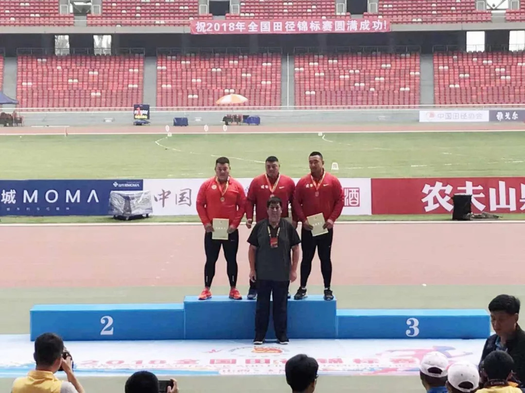 孙帅铅球第二名颁奖现场(左一)