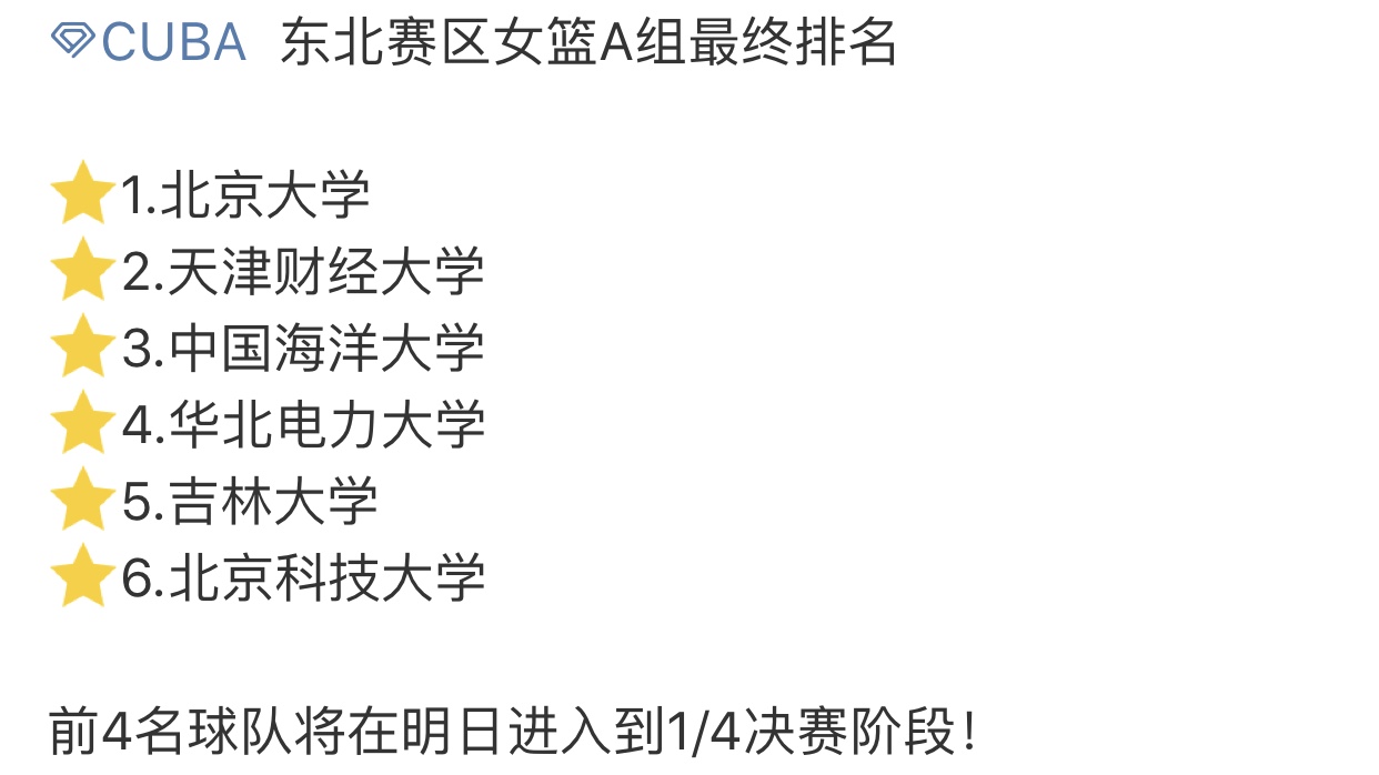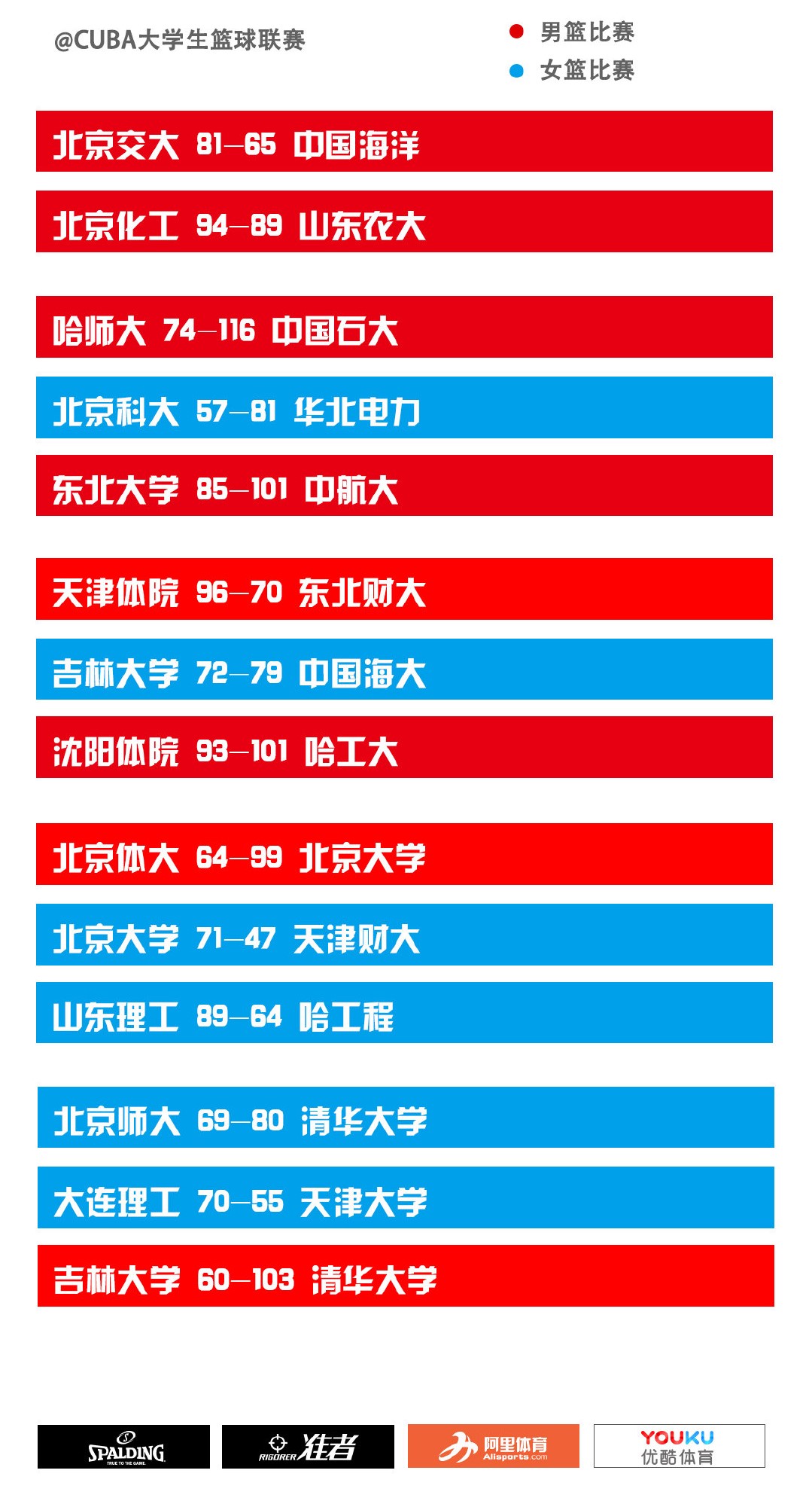 本场比赛北京大学男篮以99:64战胜北京体育大学轻松拿下小组第一,祝贺刘育辰取得CUBA生涯新高;北京大学大学女篮以71:47轻松战胜天津财经大学,斩获5连胜。