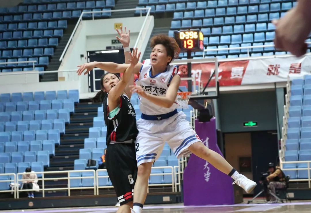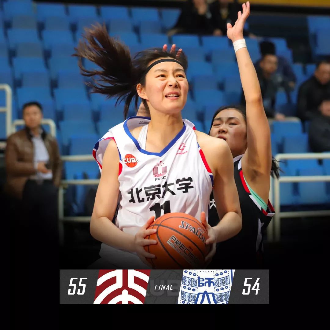 超级新人刘禹彤的加盟让北师大内线实力大增,开场后她就在篮下翻江倒海,搅得北大内线苦不堪言,但北大在张懿带领下场面丝毫不落下风,比分胶着上升,谁都无法拉开分差,但为了防守刘禹彤,北大内线谢卉、王梓伊早早背上犯规隐患。胶着状态延续到第四节,最后半节比赛谁都没能继续得分,比分一直停留在54平。比赛最后两秒钟,北师大误以为暂停数未用尽,因而多叫暂停被吹技术犯规,李萱罚球命中,北师大最后一攻失误,北大55-54险胜北师大。