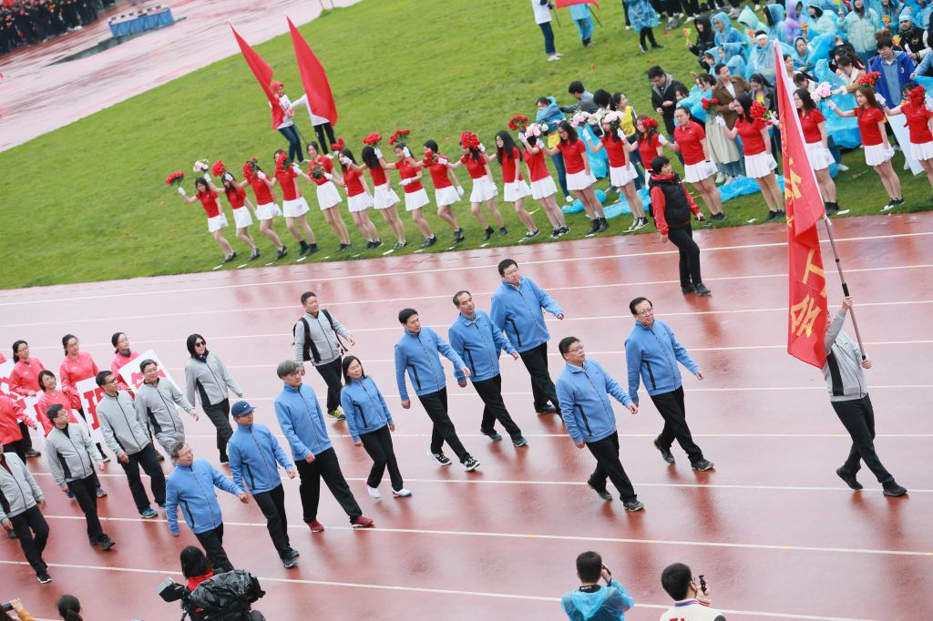 郝平校长在开幕辞中首先向在场的来宾表示热烈的欢迎,向全体工作人员表达诚挚的谢意。他表示,习近平总书记在去年的全国教育大会上强调要培养德智体美劳全面发展的社会主义建设者和接班人,北大要按照“德才均备,体魄健全”的人才培养目标,全面贯彻党的教育方针。今年是北大建校121周年和五四运动100周年,他希望广大师生在运动场上跑起来、动起来,在体育锻炼中享受乐趣,增强体质,健全人格,锻炼意志。