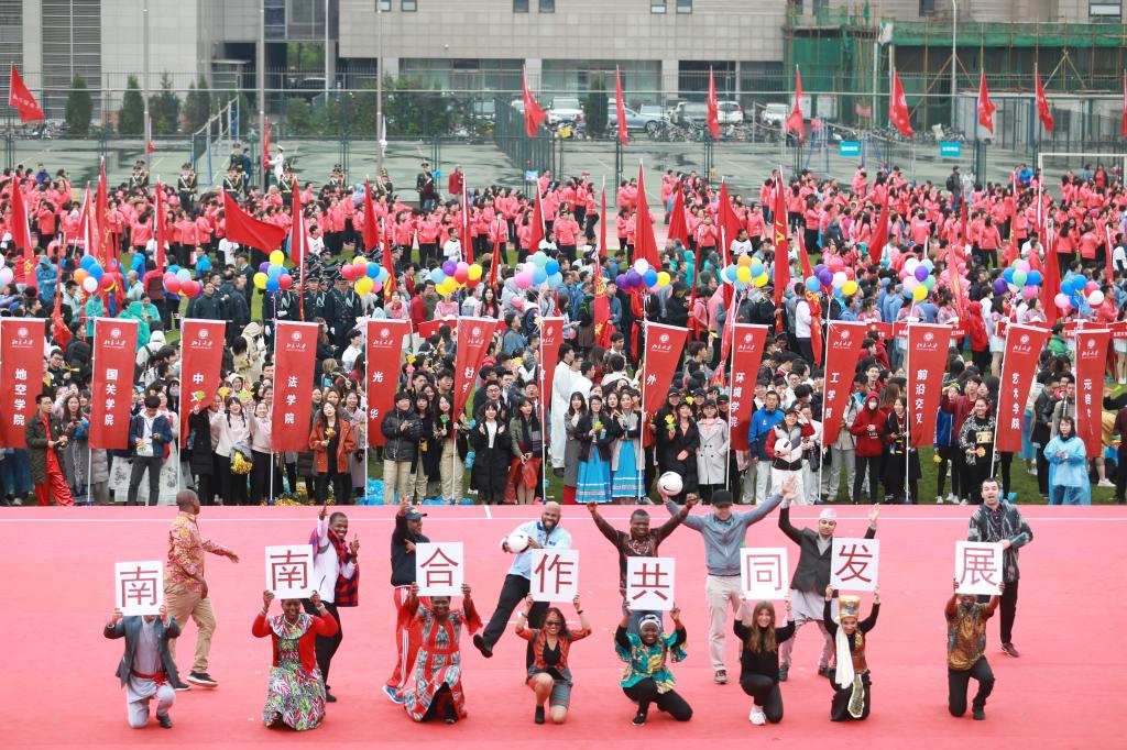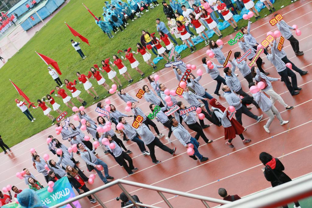 此外,国际化也是今年校运会的一大亮点。来自美国的2017级燕京学堂学生龚迈山Miles Graham作为学生代表宣誓。据了解,共有来自燕京学堂、法学院、元培学院、社会学系、经济学院、心理与认知科学学院、历史学系和深圳研究生院的45名留学生参加各类比赛。60多名留学生和8名外国专家在观礼台观看开幕式和比赛。8名留学生和5名外国专家参加国际合作部方阵,他们手持“拼搏”“友谊”“超越”的多种语言手牌及“Racing from Here to the World”的横幅,展现了大家对国际友谊的追求和对体育精神的热爱,也展现了不同文明在美丽燕园的和谐交融。