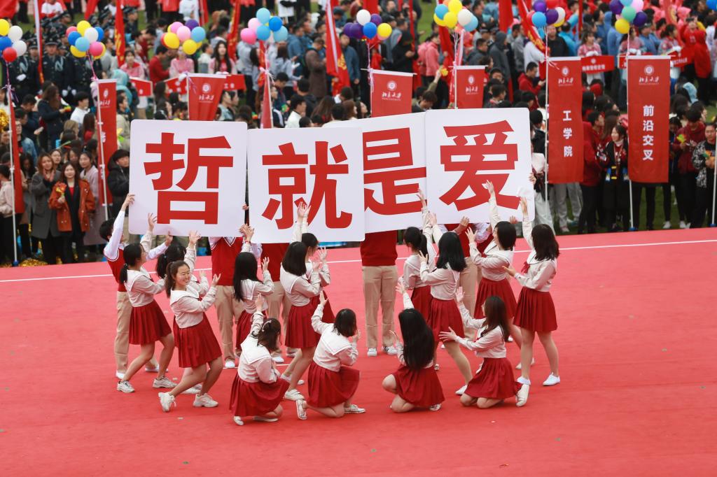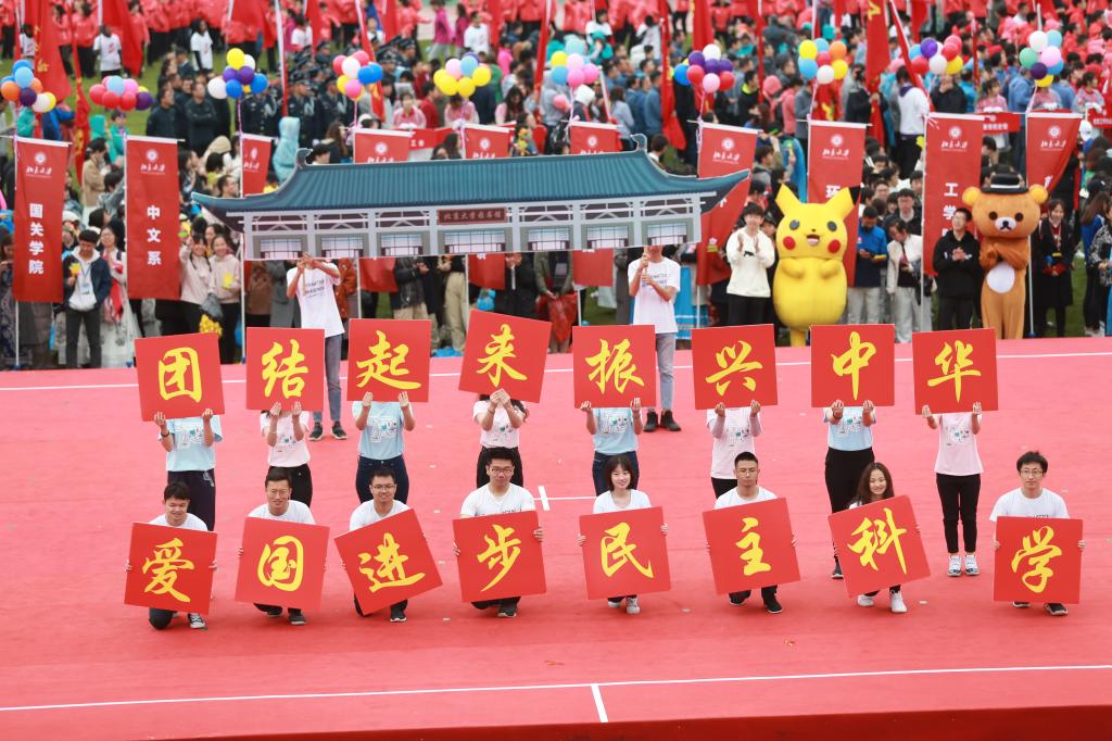 由学校不同院系和工作部门组成的51个方队依次走过观众席和主席台,与此同时对应方队的师生代表则在舞台上展现自己院系的独特风采。唱歌、跳舞、角色扮演,同学们用不同的表演形式传递了自己院系的学院特色和文化底蕴,或诙谐幽默,或优雅动人,引得观众掌声阵阵,叫好连连。而来自北大附小和北大幼儿园的表演更是一大惊喜,点燃了全场的热情。开幕式最后,数百名教职工表演的团体太极拳压轴登场,为开幕式画上圆满的句号。