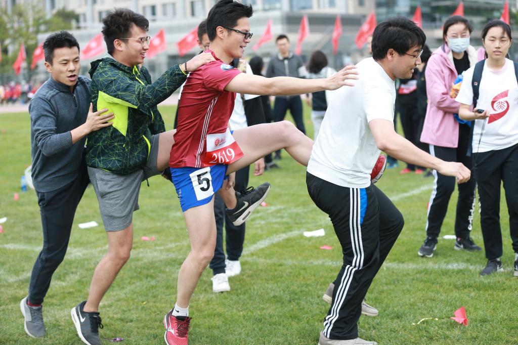 校领导参加趣味运动会项目