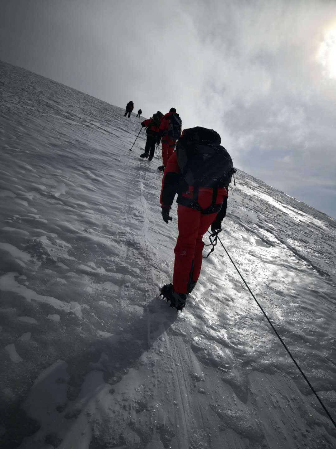 队员们早在半年前就开始了艰苦的体能训练,为本次攀登活动做积极准备,4月26日队员们陆续从北京出发,并于4月28日在格尔木完成集结,前往西大滩基地。在海拔5050米的攀登大本营完成高海拔适应后,全体冲顶队员于5月2日晚顶着风速60公里/小时的大风抵达海拔5600米的C1营地,等待冲顶时机,并于次日凌晨4时15分开始踏上征程完成了登顶壮举。