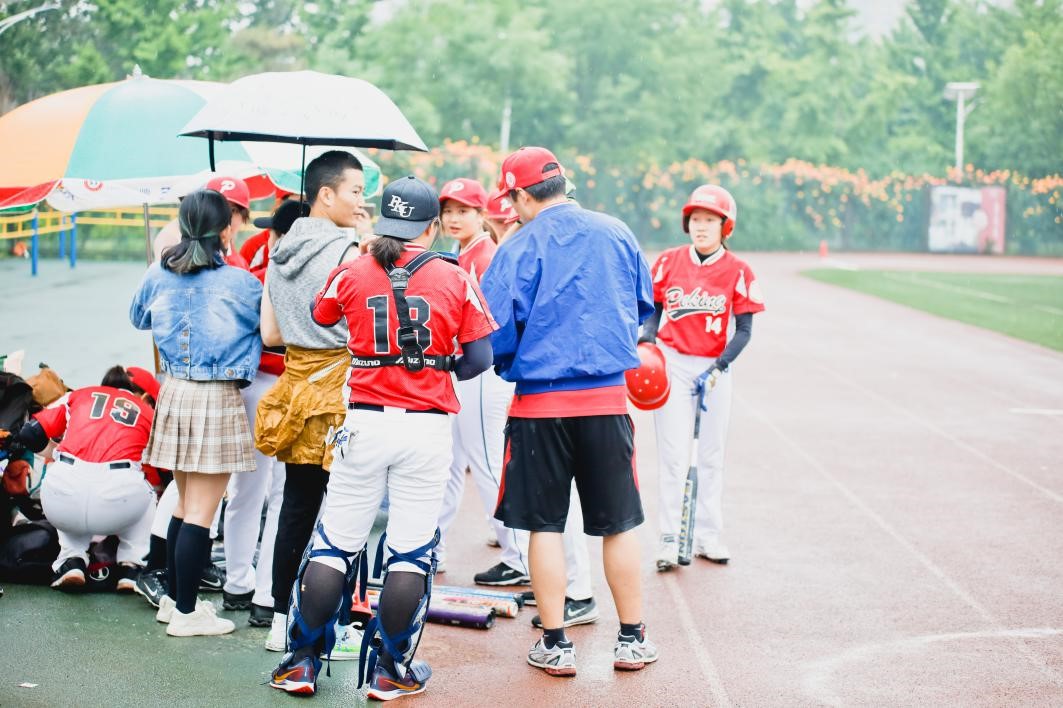 这追求与球队背后永远都在严格要求的教练密不可分。“这个球怎么回事儿啊!怎么能漏过去呢!在身前堵住了!”教练焦晨曦说罢便比划了正确的接球动作。在赛前热身环节,焦指导(队员更爱这么称呼)挥着教练棒带大家边练习防守,边强调比赛精神。“球朝你的方向来了,就是你的球,必须要接到!别想着你的后面还有人给你补,球穿到了外野,别人能多上多少个垒啊!”垒球队还有一位每个失误都躲不过他的法眼的王指导,“一垒你看到球在哪儿了吗!跑啊!为什么不偷垒!你看什么戏!”严格的要求、严厉的训斥背后是教练对获得胜利的信念和对队员成长的指导与期待。