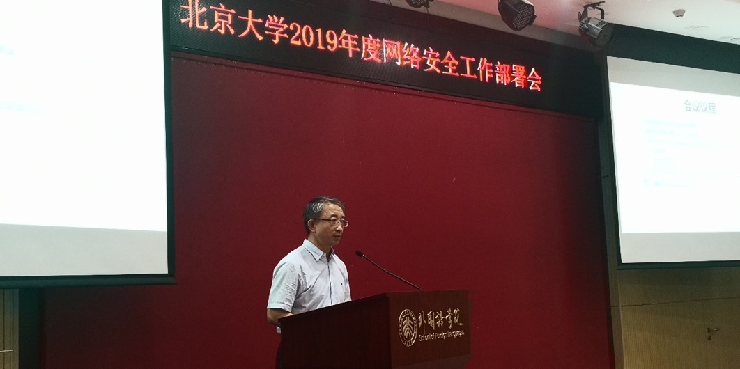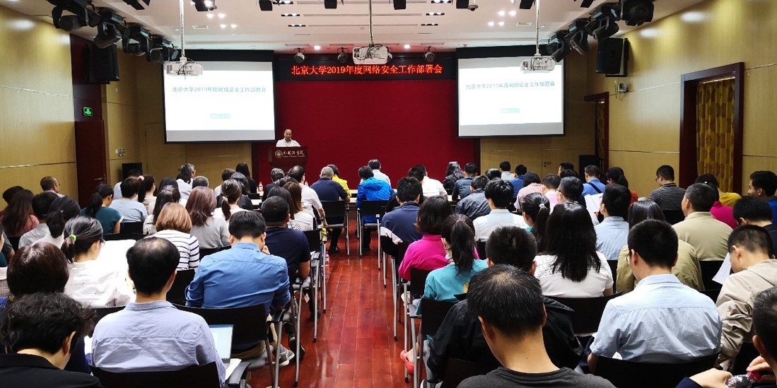 为贯彻中央有关精神,落实教育部党组及上级有关部门要求,建立健全学校网络安全责任制,提升学校网络安全工作总体水平,根据学校网络安全和信息化委员会的整体工作安排,2019年5月17日上午,北京大学召开本年度网络安全工作部署会,对学校调整网络安全和信息化工作体制、建立网络安全管理工作制度进行了专题部署,对推进网站群建设、夯实二级单位网络安全责任制进行了专项通报。北京大学党委副书记、网络安全和信息化工作小组组长安钰峰出席会议并讲话,学校90余家院系、职能部门、直属和附属单位网络安全相关负责人及联络员与会。会议由党办校办副主任、网络安全和信息化委员会办公室主任蒋广学主持。