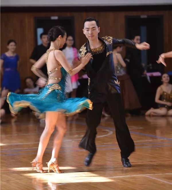 只听音乐渐起,选手们随声而动,身姿舒展优美、足下轻盈缠绵、笔挺西装与飘摇裙裾在场内相映成趣。在与舞伴默契的升降旋转间,选手们的摆荡与音乐同呼吸、选手们的热情在眼神中流转闪耀。比赛精彩纷呈,一曲曲或柔美、或欢快的舞蹈,为现场观众提供了一场视觉上的饕餮盛宴。