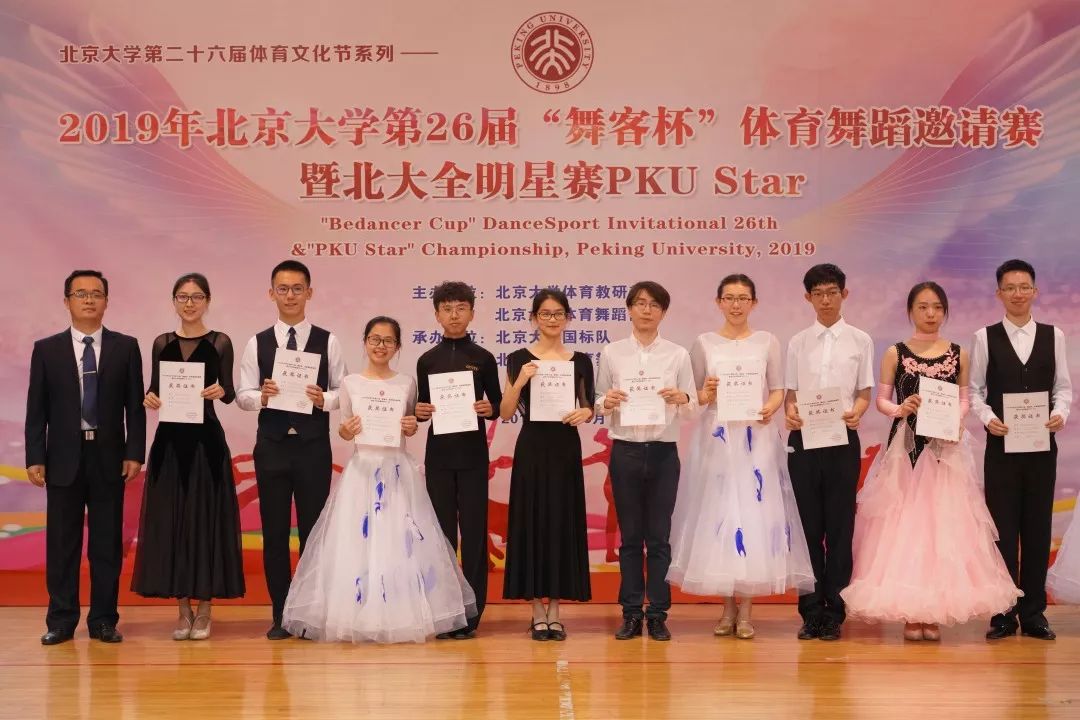 来自北京大学2019年春季学期体育舞蹈课程班、北化国标舞团、北京大学国标队、北京大学体育舞蹈团等共计21支队伍、近300名选手,参加了47个组别的角逐。
