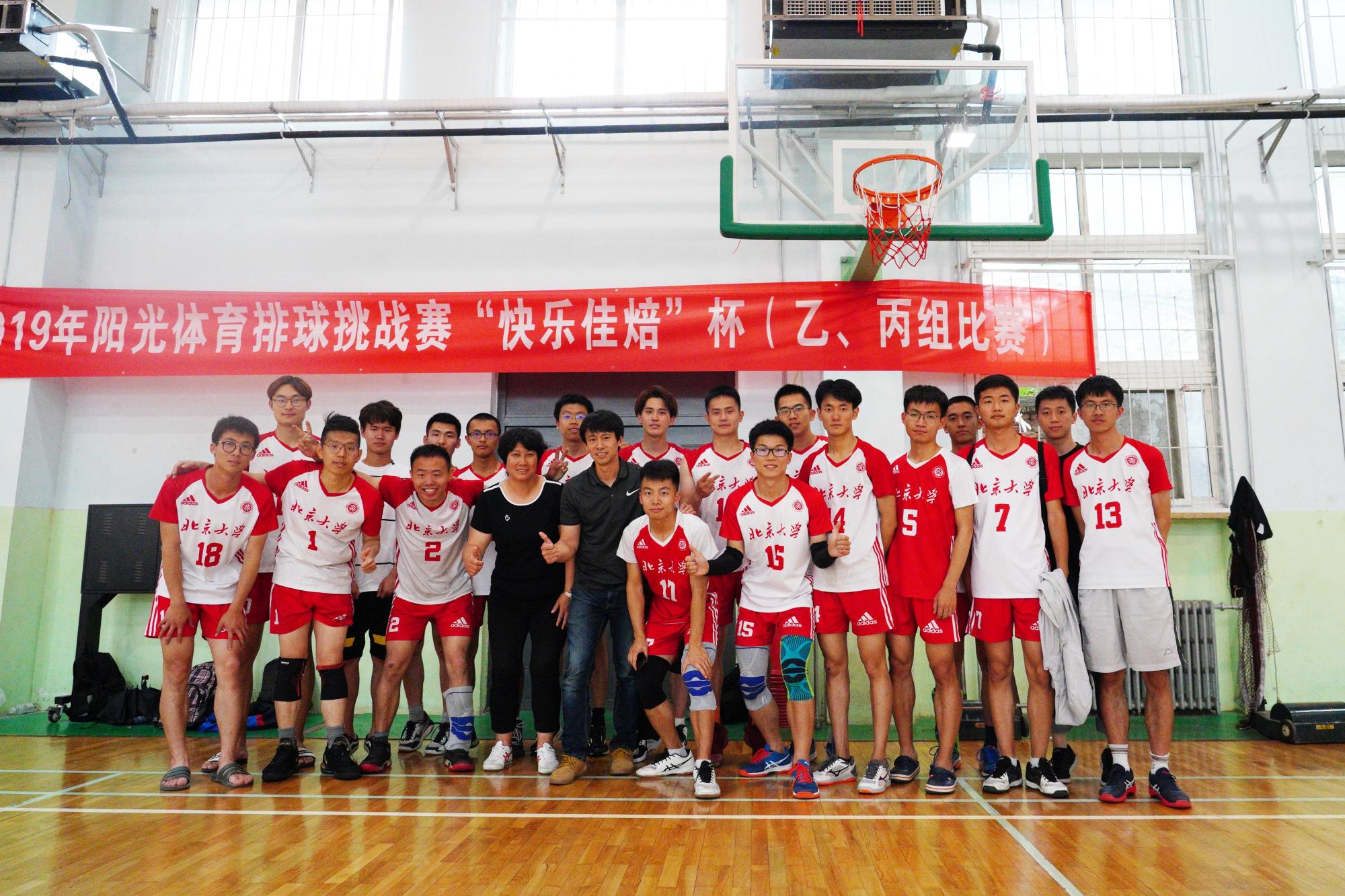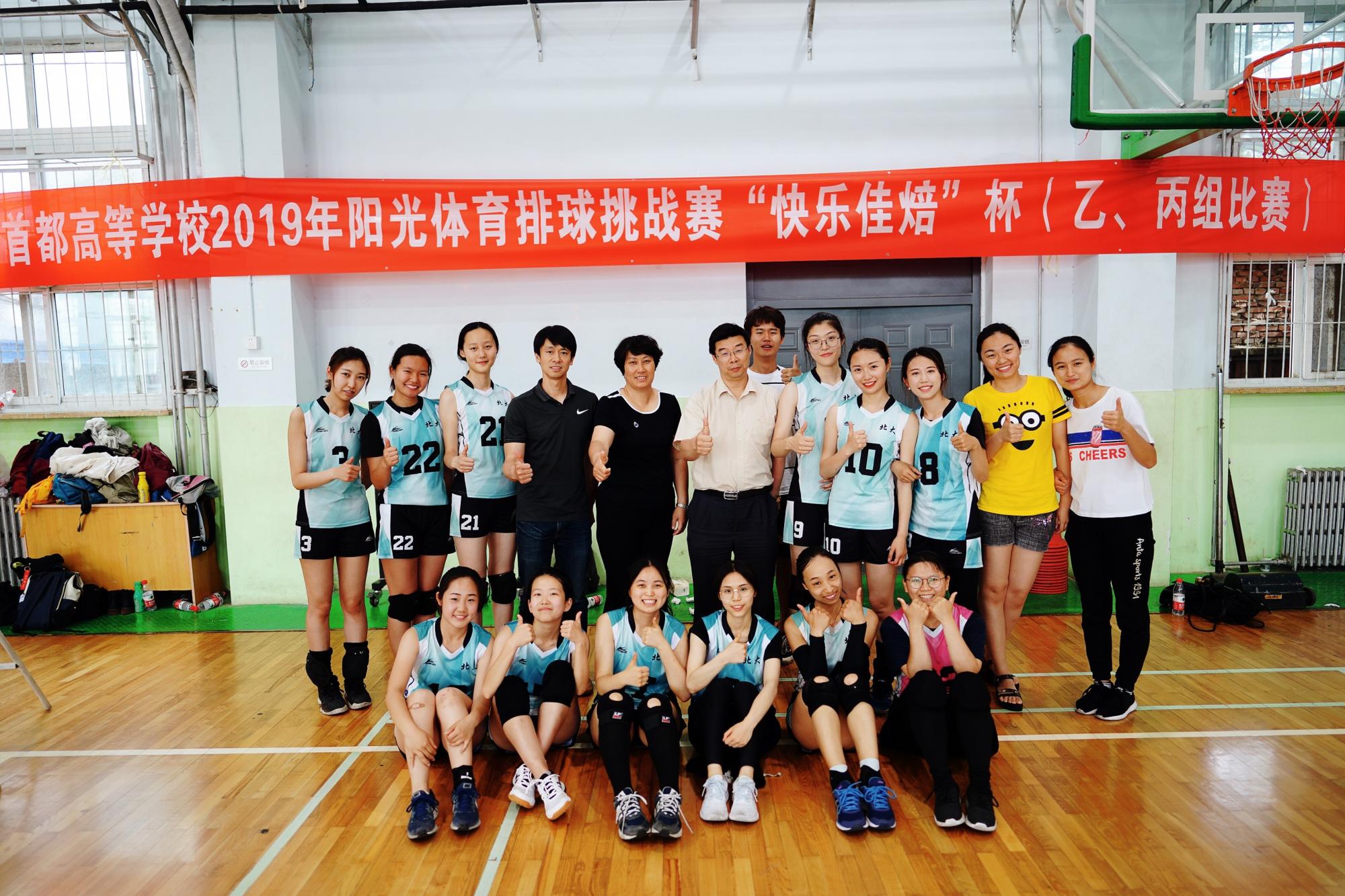 2019年5月26日,北京市2019年阳光体育排球挑战赛“快乐佳焙”杯乙、丙组比赛在北京交通大学东校区体育馆落下帷幕。本次比赛由北京市大排协主办,北京大学、北京航空航天大学和北京交通大学承办,吸引了北京市近30所高校,男女共约50支队伍,近千名运动员参与这场排球盛会。最终北京大学女排荣获2019年“阳光杯”冠军,北京大学男排获得亚军。