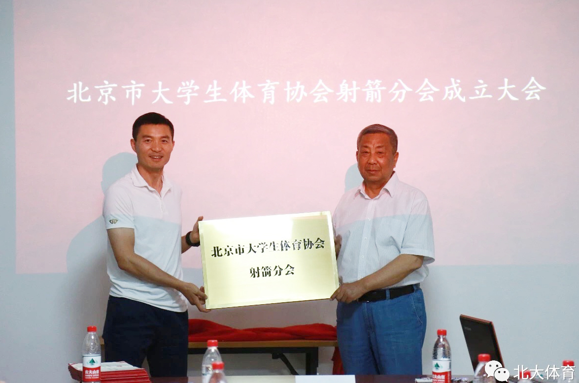 市大体协主席杜松彭、北京大学体育教研部主任钱俊伟共同为射箭分会揭牌。