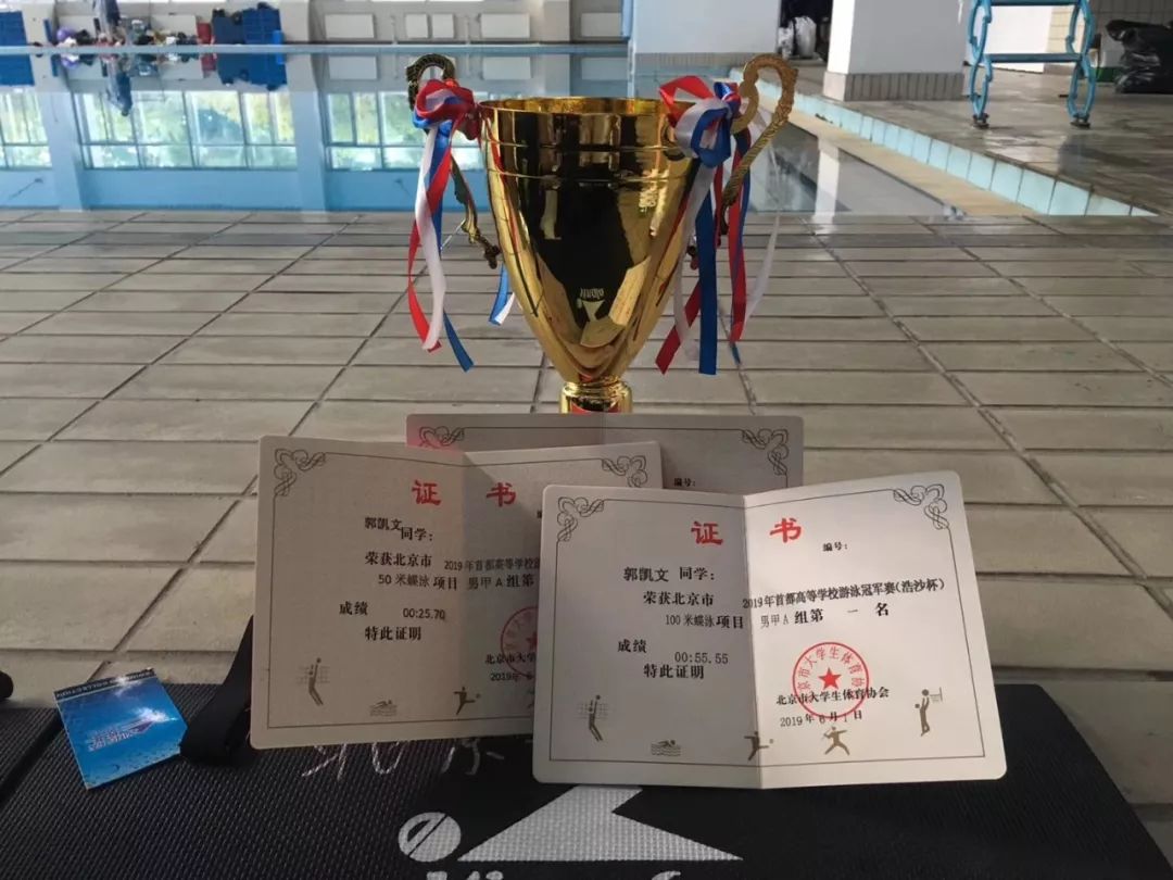他们虽没有从小经过专业的训练,但仰仗队员们对游泳项目的热爱和在运动中的过人天赋,在首都高校的赛场上,也为北京大学代表队挣得了荣誉: