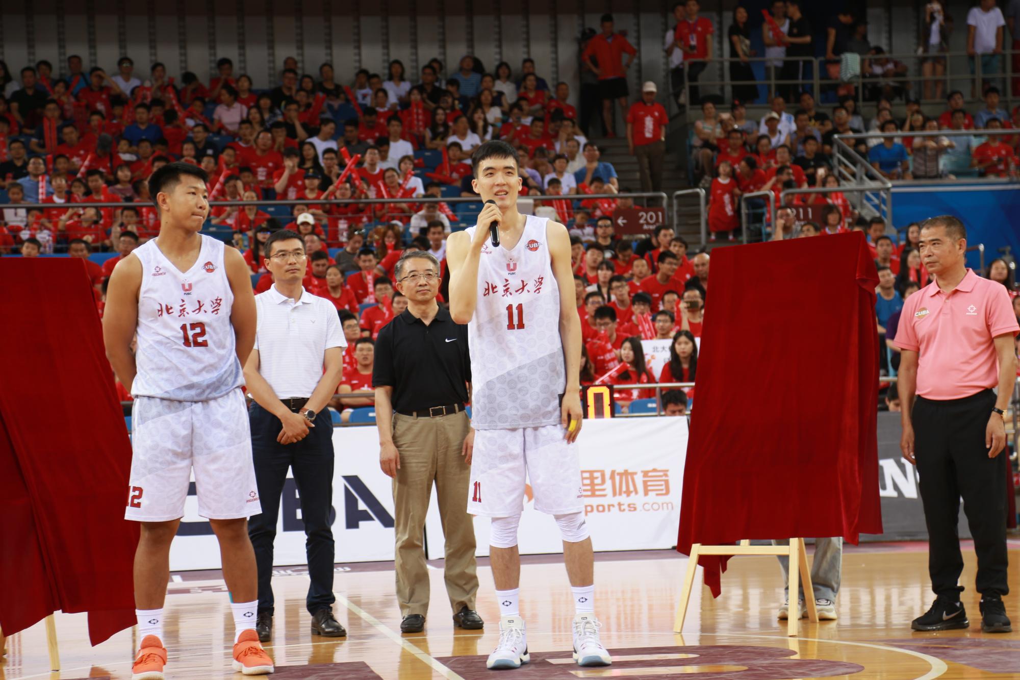 中场休息环节,北京大学分别为最后一届征战CUBA赛场的球员刘育辰、王涛举行了退役仪式。北京大学党委副书记安钰峰、北京大学体育教研部主任钱俊伟、副书记毛智和、男篮教练员张剑参与了退役仪式。