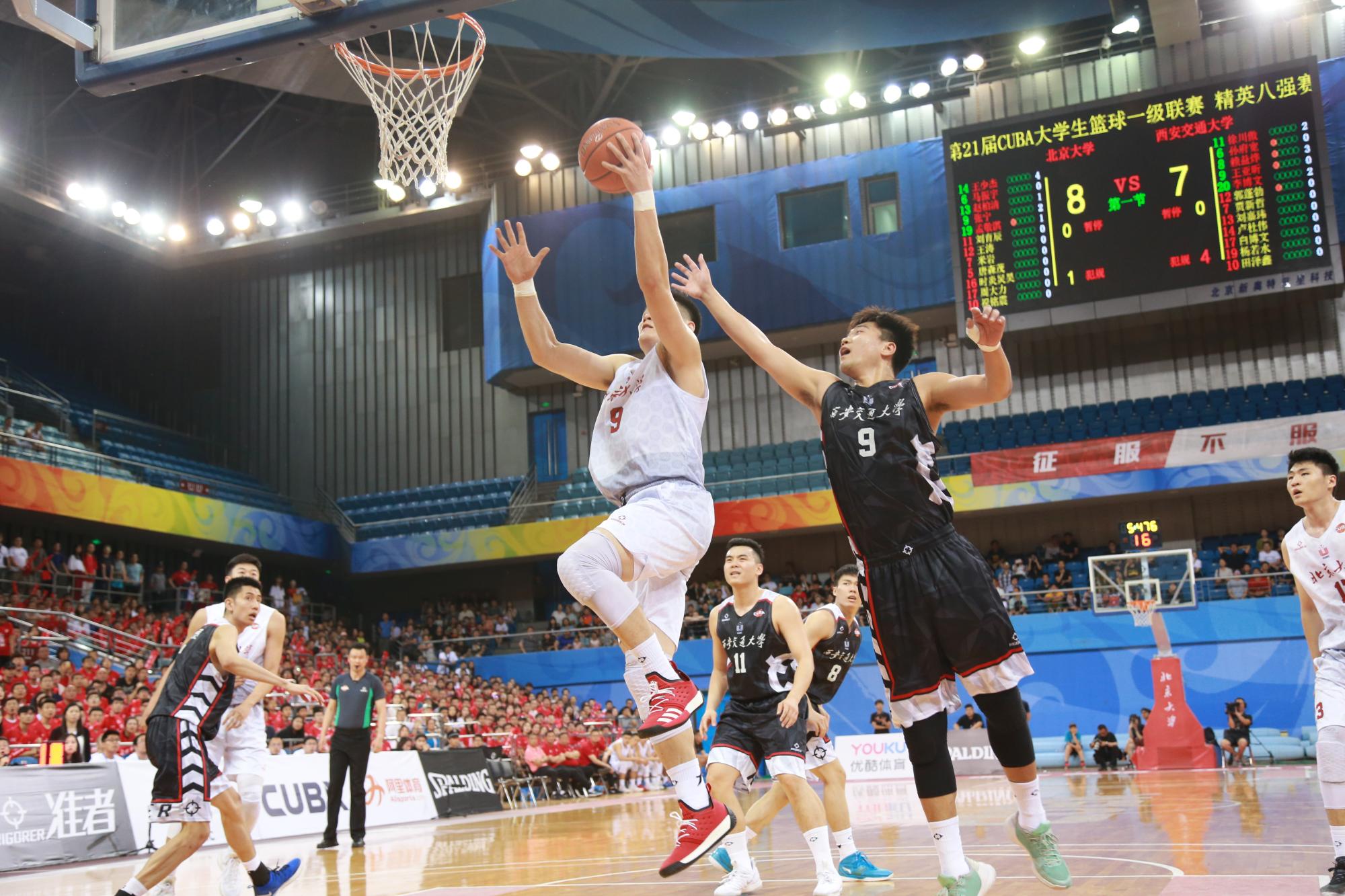 6月9日,第21届CUBA男篮精英八强赛第二回合在邱德拔体育馆超燃上演, 北京大学坐镇主场以84:71战胜西安交大,北大再度晋级巅峰四强。