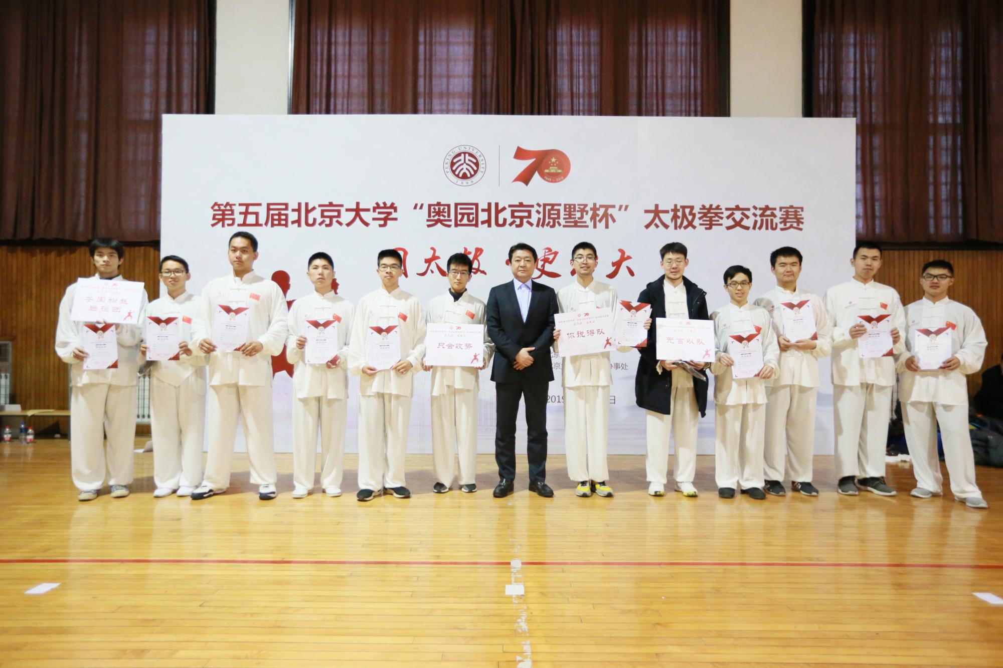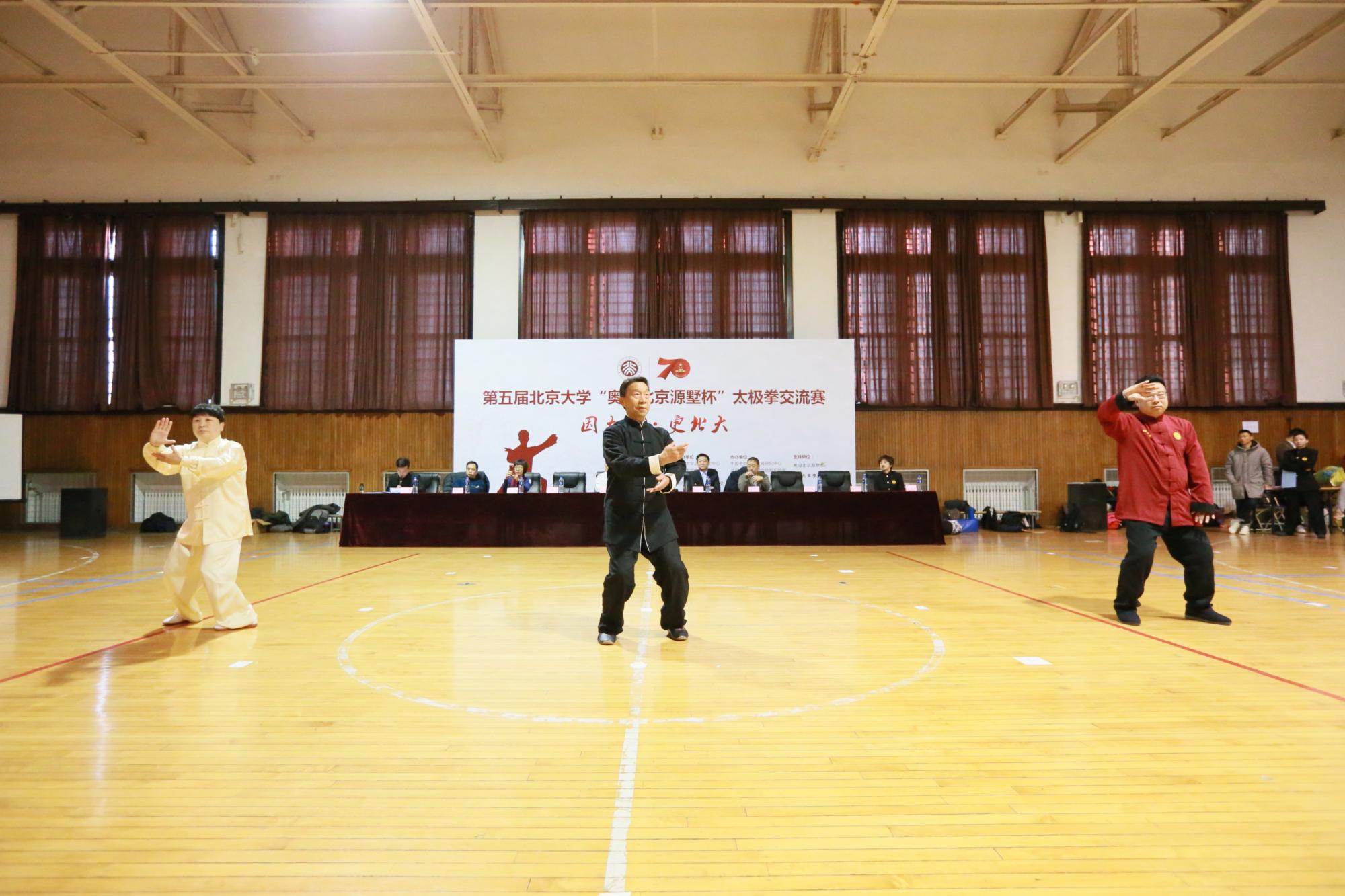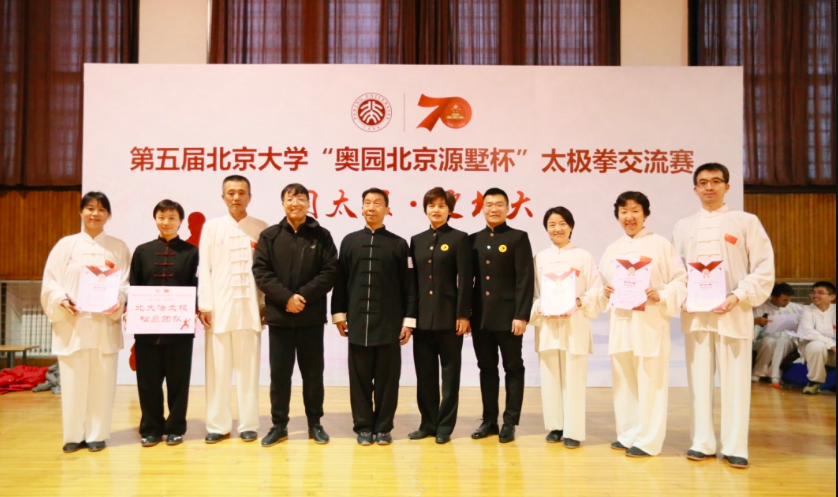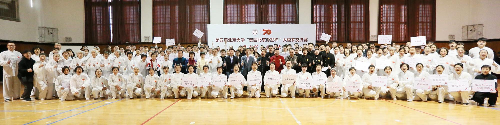 2019年12月21日上午,第五届北京大学“奥园北京源墅杯”太极拳交流赛在北京大学第一体育馆成功举办。来自北京大学太极拳必修课程班、教职工未名太极社、信科、法学院、经济学院、物理学院、学科办、校医院、会议中心、图书馆和燕园街道等48支队伍、240名选手参加了此次太极拳交流赛。本次比赛由北京大学武术研究中心、北京大学体育教研部、北京大学工会、北京大学燕园街道办事处联合主办,中国老龄事业发展研究中心、北京大学体医融合创新实验室和北京大学未名太极社协办。