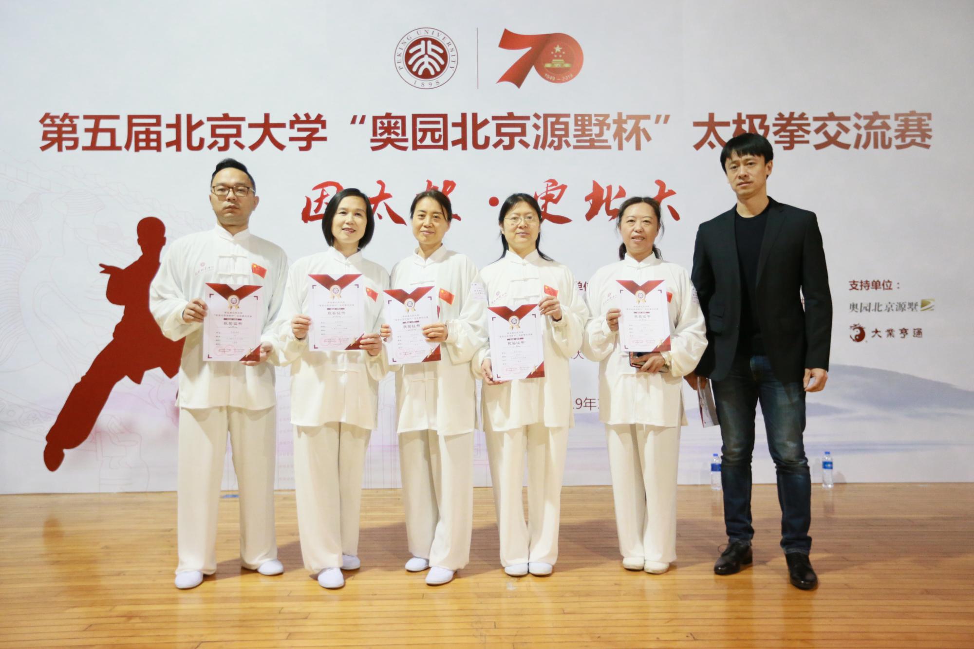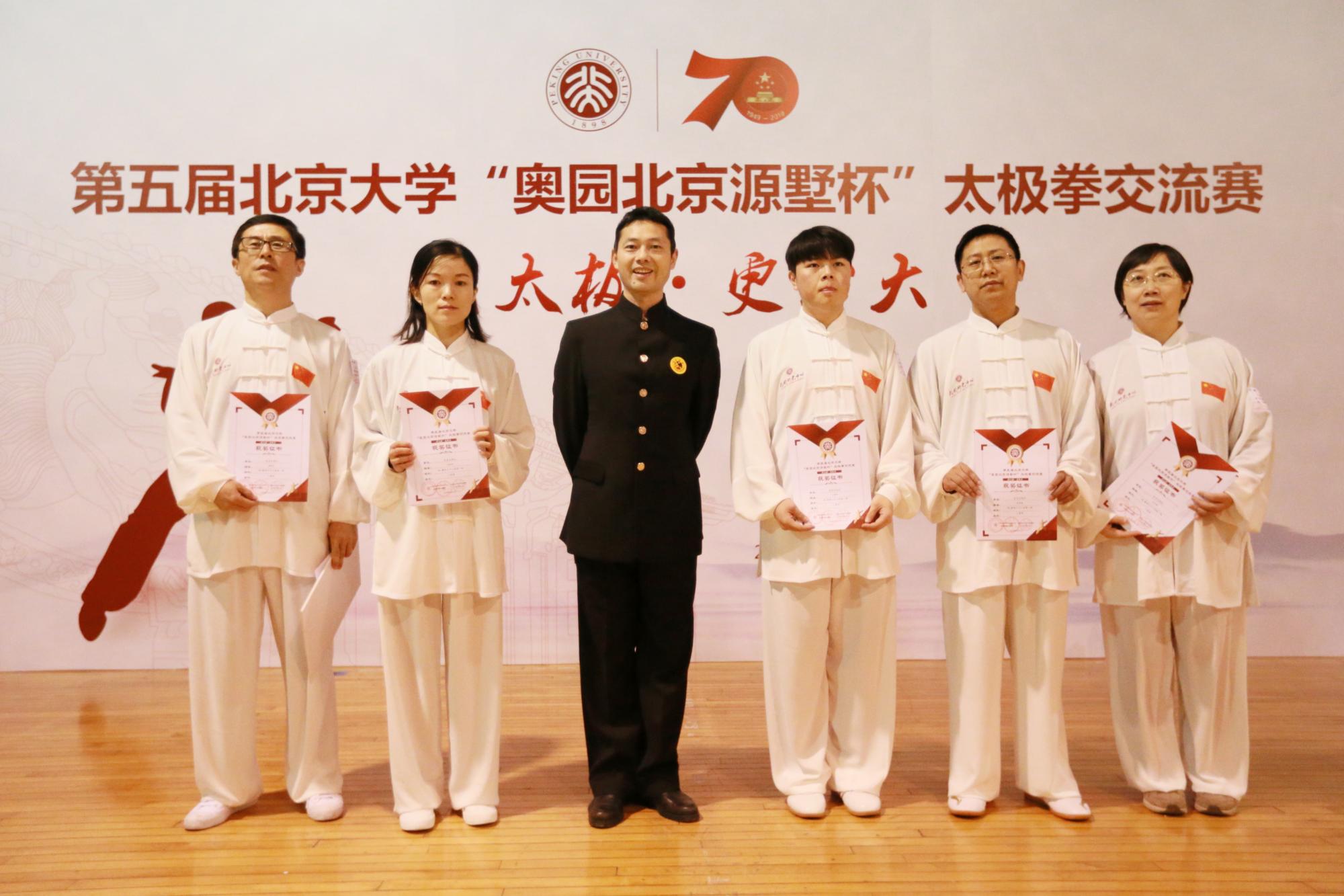 “蔚秀紫燕队、四象八卦太极魂队、燕之缘队、北大法太极松泉团队二队、无极队”等队伍分别获得“燕园街道集体五禽戏、燕园街道集体八段锦、教职工集体八式太极拳、教职工集体老架一路、教职工集体八段锦”一等奖。