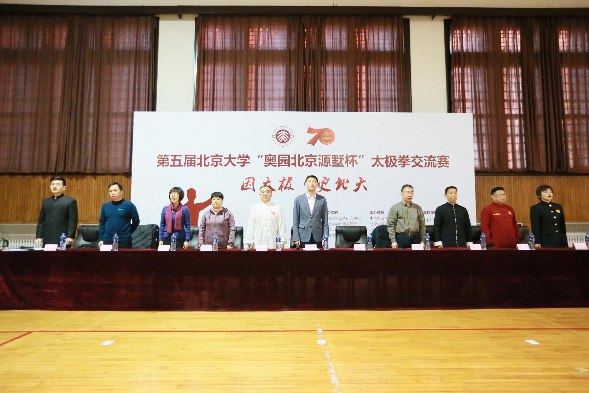 北京大学体育教研部主任钱俊伟、工会常务副主席张宝岭,燕园街道办事处书记杨学祥、北京大学医院院长云虹、中国奥园集团北京公司总经理陈万庆、北京体育大学副教授、吴式太极拳第五代传人宗维洁、陈式太极拳第十一代传人杨松泉、陈式太极拳第十二代传人陈有华、体育教研部直属党支部副书记王东敏以及大业亨通总经理候允国等出席了开幕式。本届大赛由中国教育电视台资深主持人马广超主持。