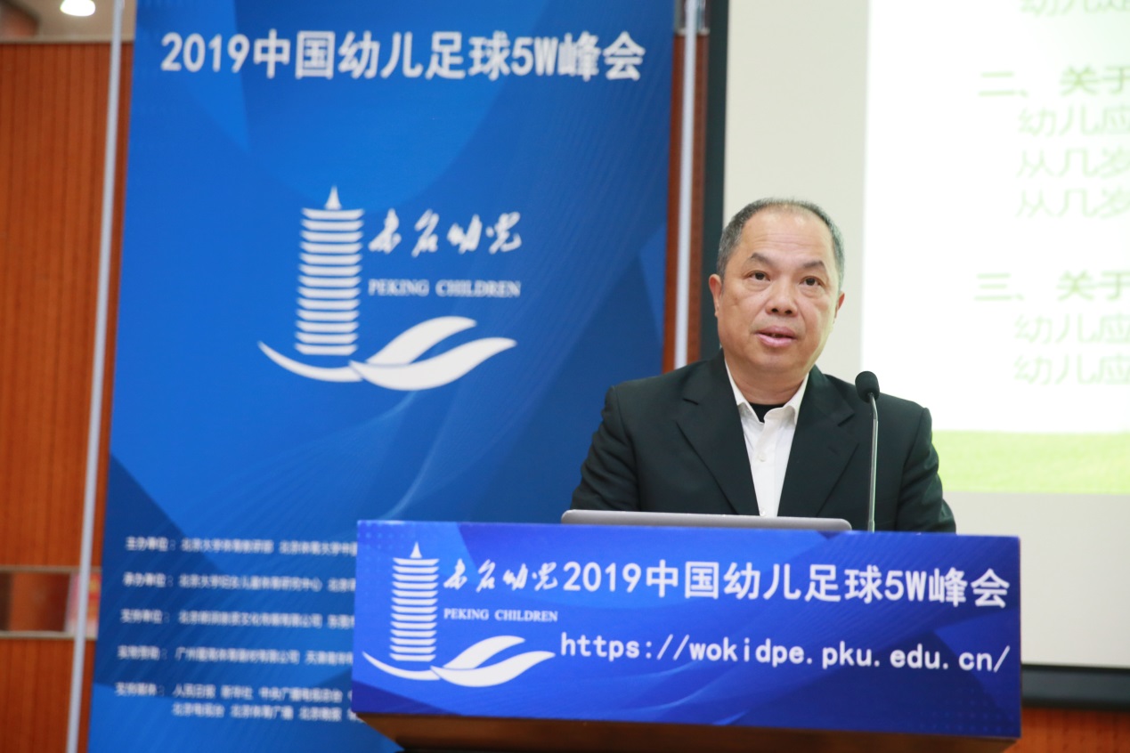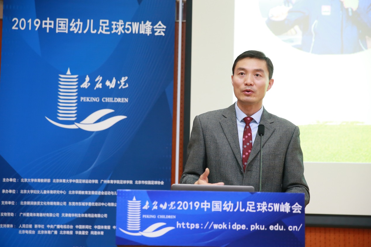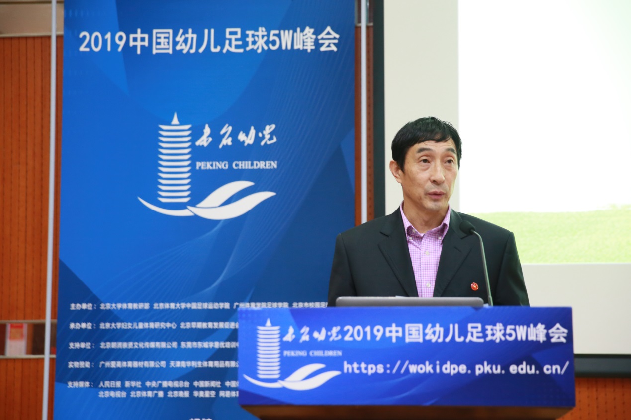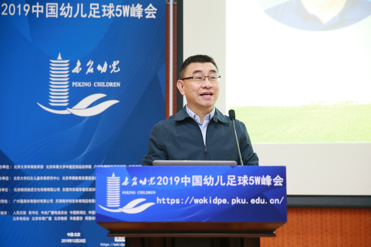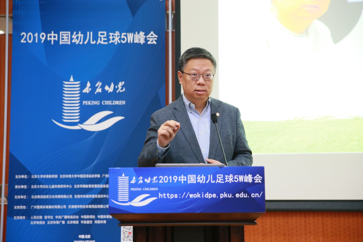 2019年12月26日,“中国幼儿足球5W峰会“在北京大学隆重举行。本次峰会由北京大学体育教研部、北京体育大学中国足球运动学院、广州体育学院足球学院、北京市校园足球协会联合主办,由北京大学妇女儿童体育研究中心、北京早期教育发展促进会运动与儿童成长专业委员会承办。北京大学体育教研部直属党支部副书记王东敏博士主持开幕式,北京大学校党委副书记兼秘书长安钰峰、国家体育总局青少司一级巡视员兼副司长王雷、北京市体育局副局长杨海滨、中国足协青少部高级主管郭潇、北京大学体育部主任钱俊伟等领导在开幕式上致辞。