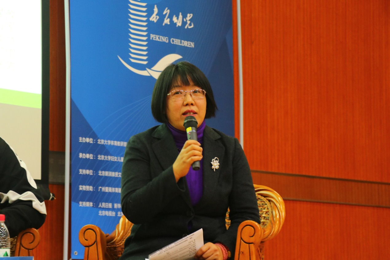 最后, 在北京大学体育教研部赫忠慧教授的主持下,参会者围绕幼儿足球开展中面临的4个难题进行了分组讨论,每组排出2名代表总结发言。这样的会议形式让人耳目一新,既体现了平等参与的价值,又达到了沟通交流的目的。会场气氛热烈,参会者对本次峰会给予了高度的肯定和评价。