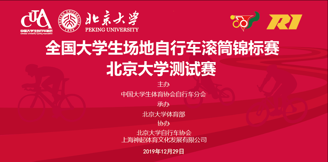 2019年12月29日星期日,在北京大学四体育馆骑划跑健身中心如期举办全国大学生场地自行车滚筒锦标赛北京大学测试赛,本次赛事,由中国大学生体育协会自行车分会(CUCA,以下简称大自协)主办,北京大学体育部承办,R1以及北京大学自行车协会承办。