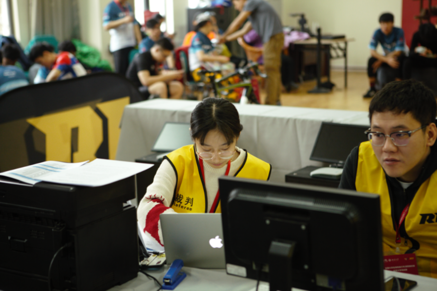 紧张有序的比赛赛场(FOP, Field of play)由R1的团队担当,他们是经验丰富的团队,组织过上海,黑龙江,西安地区的高校滚筒赛事。FOP主管,兼副裁判长姜季老师说,大自协为了增加同学们的参与度,开放了报名限制,让更多的同学能够体会滚筒赛的魅力,但同时也给竞赛秩序的编排增加了难度。他表示,这是他组织过的项目最多,最复杂的赛事,没有之一。