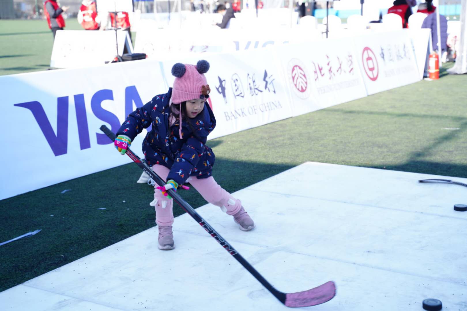 现场冰球体验,让大朋友和小朋友们都体验到推击冰球的挥杆乐趣。