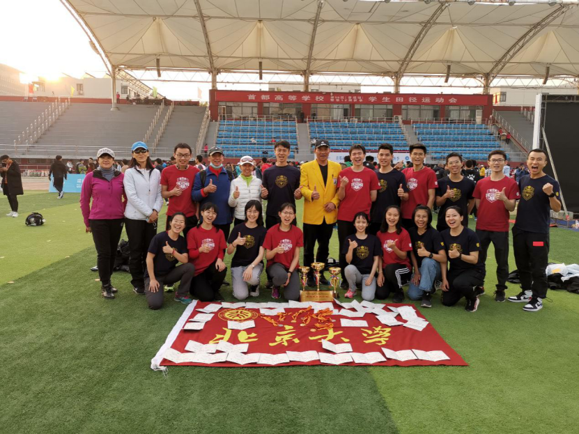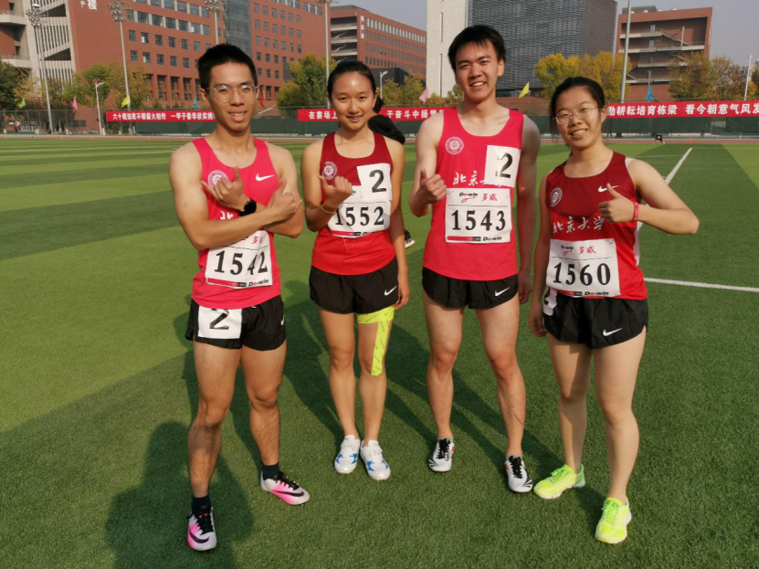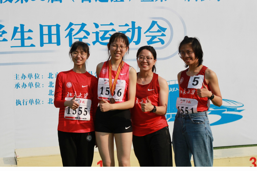 江浩林(前沿交叉学科研究院2019级博士研究生):这是我第一次代表学校参加首都高校田径运动会,这次参赛经历留给了我难忘的、奇妙的和珍贵的回忆。赛前因为科研任务繁重,耽误了训练,所以我曾一度“退赛”。在男子4x100米接力赛三缺一的情况下,我在老师和队员的鼓励下重返跑道,跟大家一起训练备战。在比赛的两天时间里,我看到了北大田径队的同学们奋勇拼搏的体育精神,备受鼓舞,暗暗下决心一定要拿下百米接力的金牌。百米接力比赛时,当发令员发出“各就位”的指示时,我大吼了一声,给自己提升信心和能量,然后全神贯注地等待发枪。最后,在大家的共同努力下,我们成功拿下了百米接力的冠军。