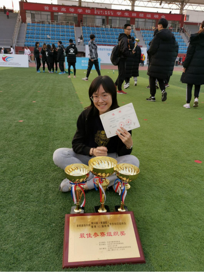 张令仪(元培学院2019级本科生):乱跑乱跳的一个周末,特别高兴收获了很多欢乐(田径队的人怎么都这么棒啊!)立刻回去赶我拖了很久的ddl啦。