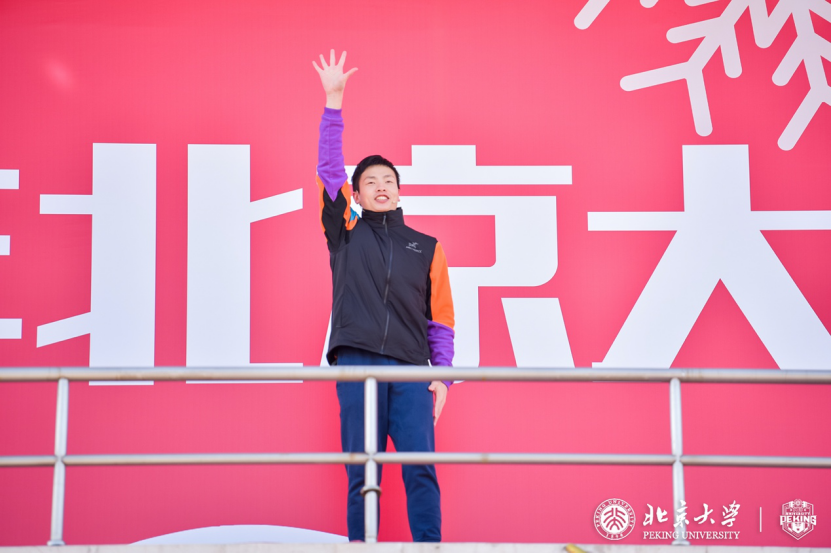 北大的同学在校期间只要完成一次全程马拉松或越野跑赛事,就可以申请北京大学“百城百马”奖学金,今年有21位同学符合申请资格。其中梁毅同学以27小时30分14秒完成了越野100公里的越野跑,贺泳杰同学以2小时44分52秒的成绩称为本年度最快跑者。开赛前由奥运冠军王军霞、孙玉洁,校团委书记户国栋、校医院书记朱建华、元培学院书记吴艳红、体育教研部主任钱俊伟共同为获奖同学颁发奖状。