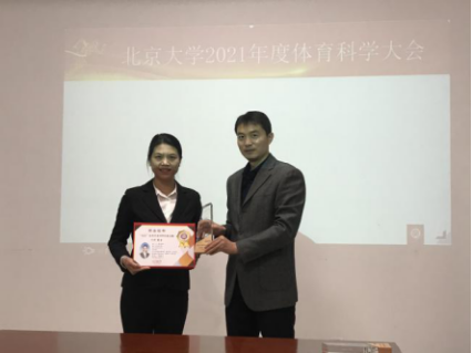本次体育科学大会评选了“首在”体育学术年度人物(2020),学术委员会主席张锐教授宣读颁奖词,体教部赫忠慧教授、亓昕博士在科研学术领域潜心钻研、锐意进取、求真务实,对北大体育做出贡献。体教部主任钱俊伟博士为“首在”体育学术年度人物(2020)颁奖。