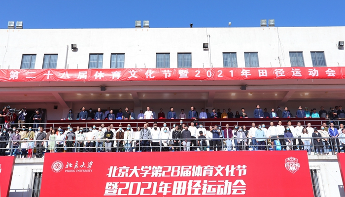 5月7—8日,以“强体魄,庆百年”为主题的北京大学第28届体育文化节暨2021年田径运动会在五四体育中心举行。北京市总工会党组成员、副主席韩世春,北京市教育工会主席宋丽静,北京市大学生体育协会主席郝光安等嘉宾应邀出席运动会开幕式。党委书记邱水平,校长郝平,常务副校长龚旗煌,医学部主任乔杰,党委副书记安钰峰,党委副书记、纪委书记叶静漪,党委副书记、副校长陈宝剑,副校长张平文、黄如,校长助理、秘书长、党委办公室校长办公室主任孙庆伟,校长助理、总务长董志勇等校领导出席运动会开幕式。开幕式由安钰峰主持。