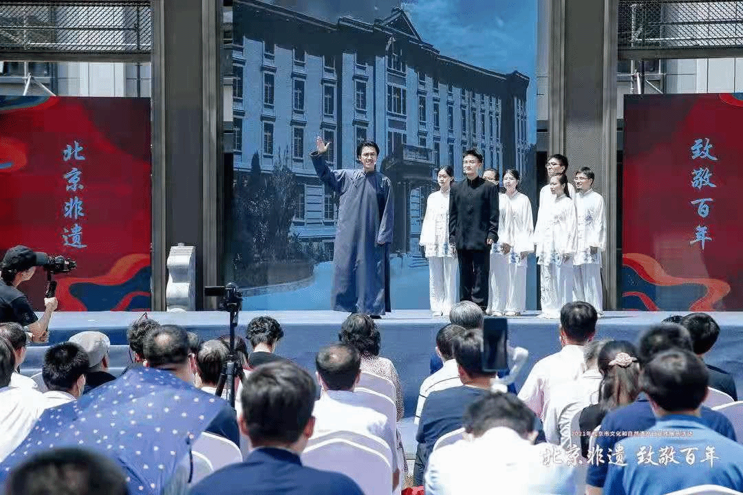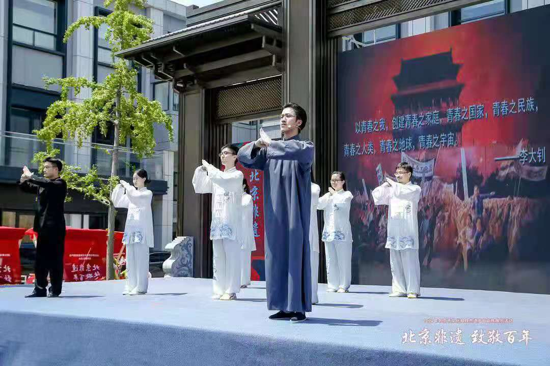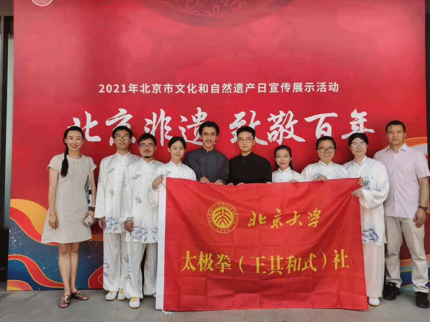 6月11日,北京大学“太极拳(王其和式)社”代表北京大学参加由北京市文化和旅游局举办的“2021年北京市文化和自然遗产日宣传活动——北京非遗,致敬百年”。在《李大钊与太极拳》情景剧中,表演了太极拳(王其和式)部分原传拳架。