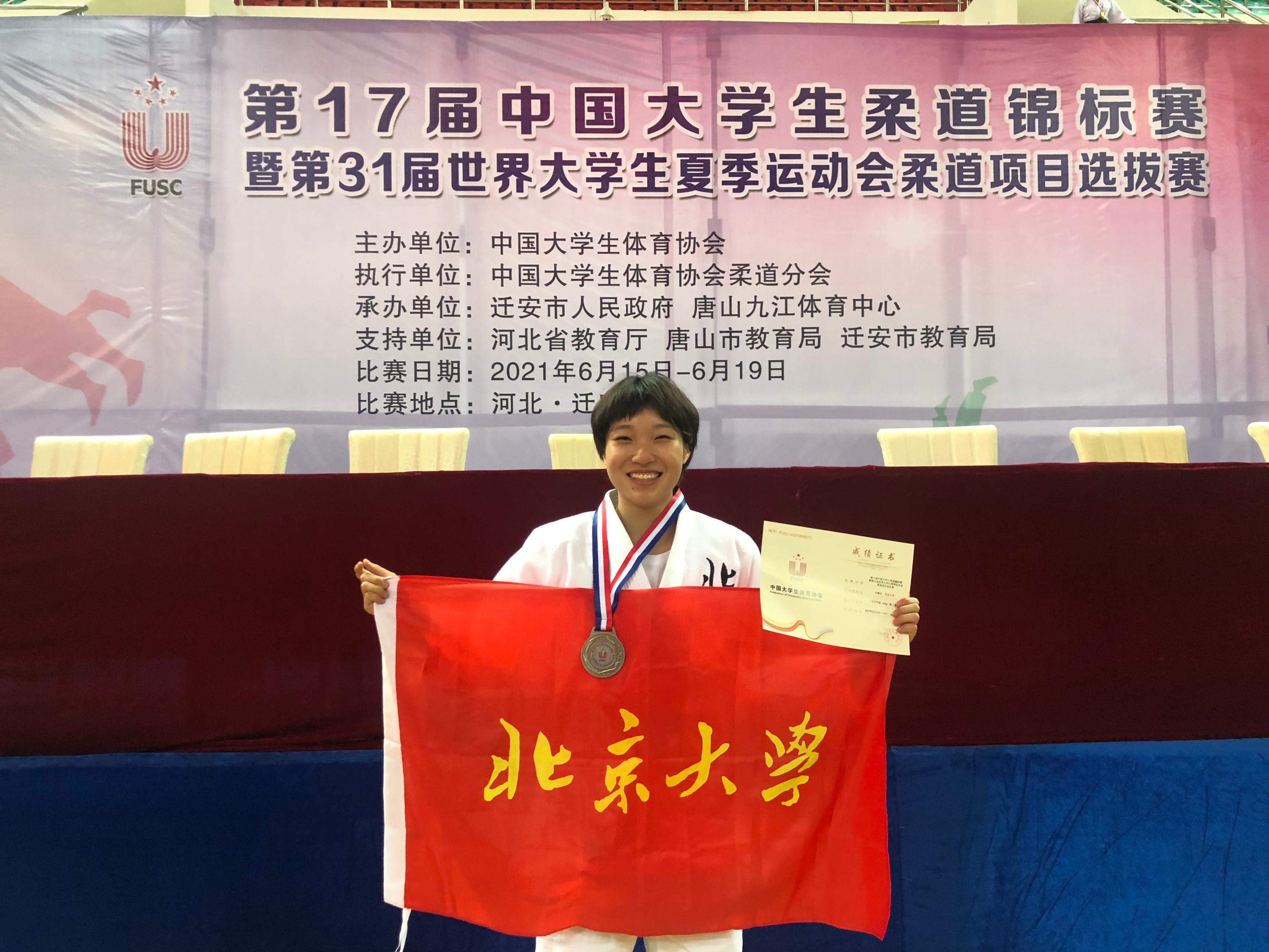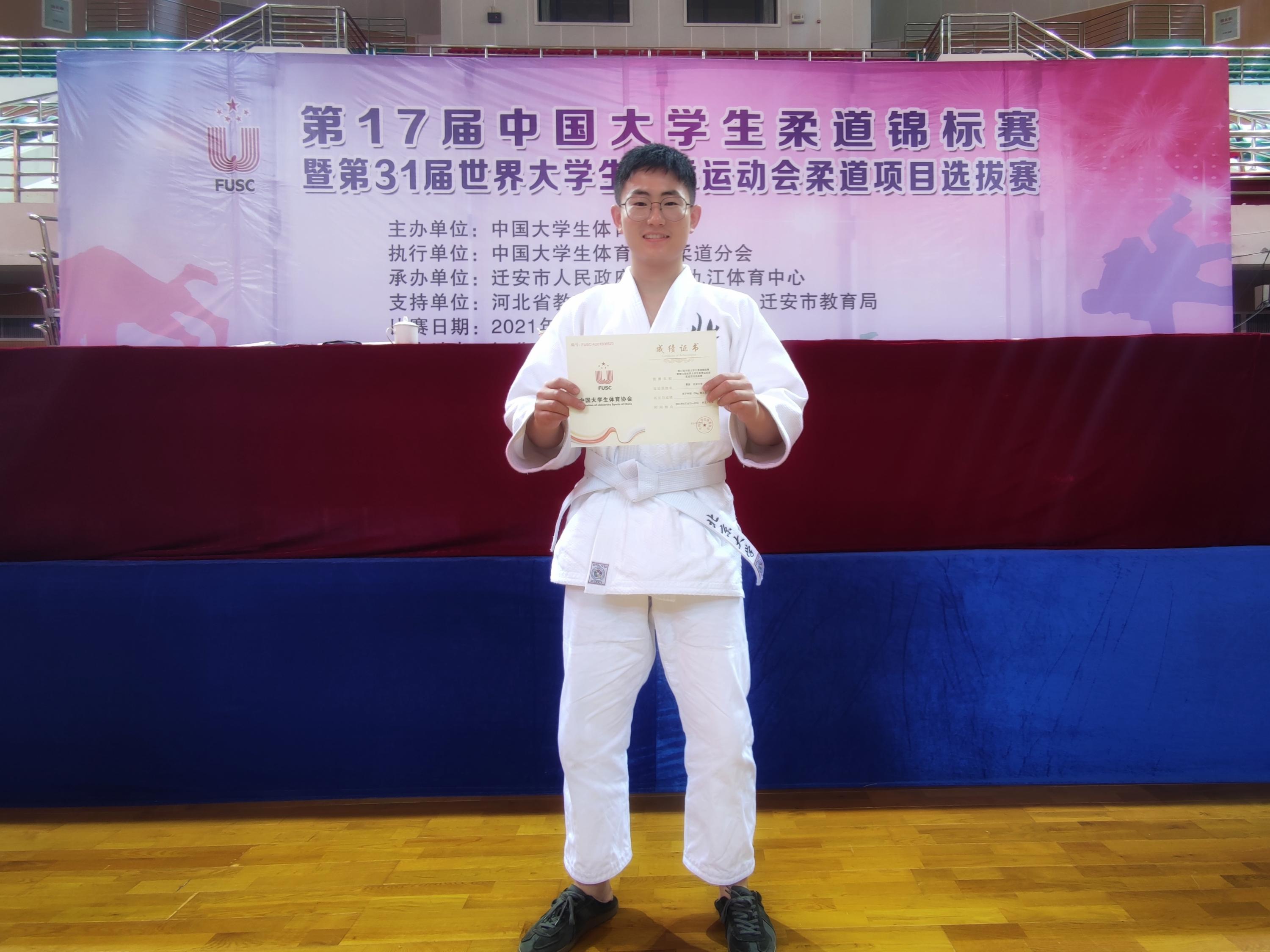 2021年6月19日,由中国大学生体育协会主办,中国大学生体育协会柔道分会执行,迁安市人民政府、唐山九江体育中心承办的第17届中国大学生柔道锦标赛暨第31届世界大学生夏季运动会柔道项目选拔赛在河北迁安圆满落幕。本次比赛有北京大学、中国海洋大学、郑州大学等34支高校队伍参与,共计265名运动员参赛。我校代表队派出来自外国语学院、马克思主义学院的岑偲仪、曹晋2名同学参加比赛,分别获得女子甲组-63KG亚军,男子甲组-73KG第五名的优异成绩。