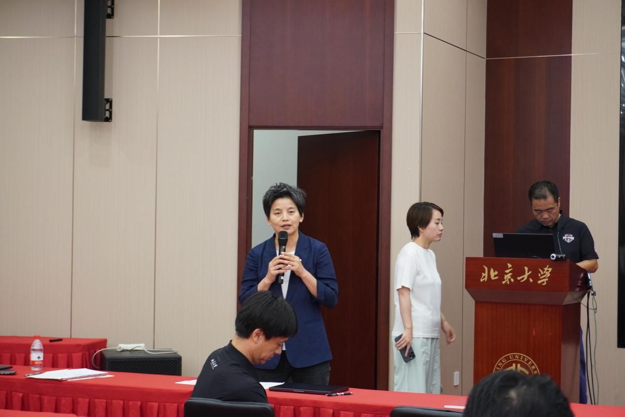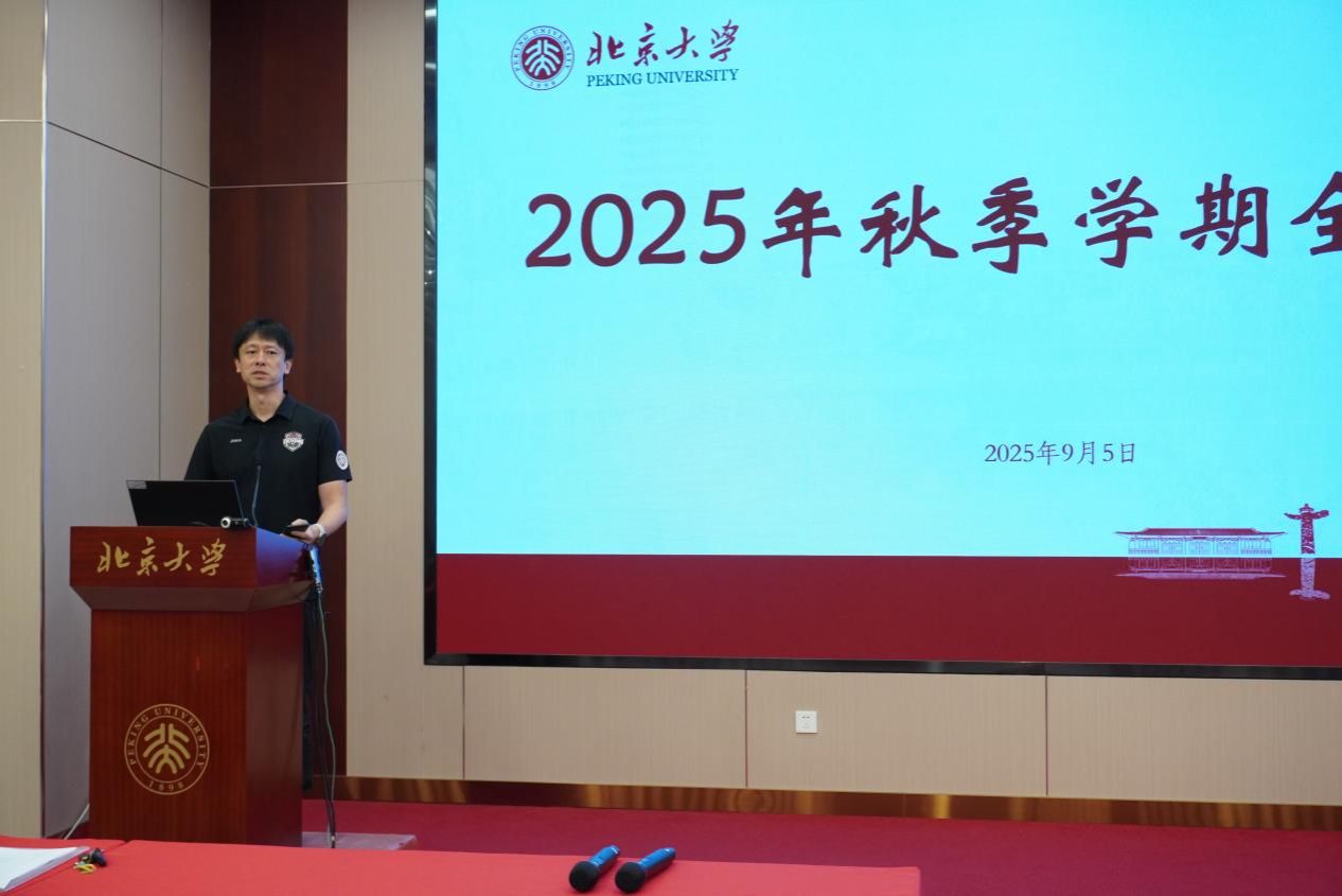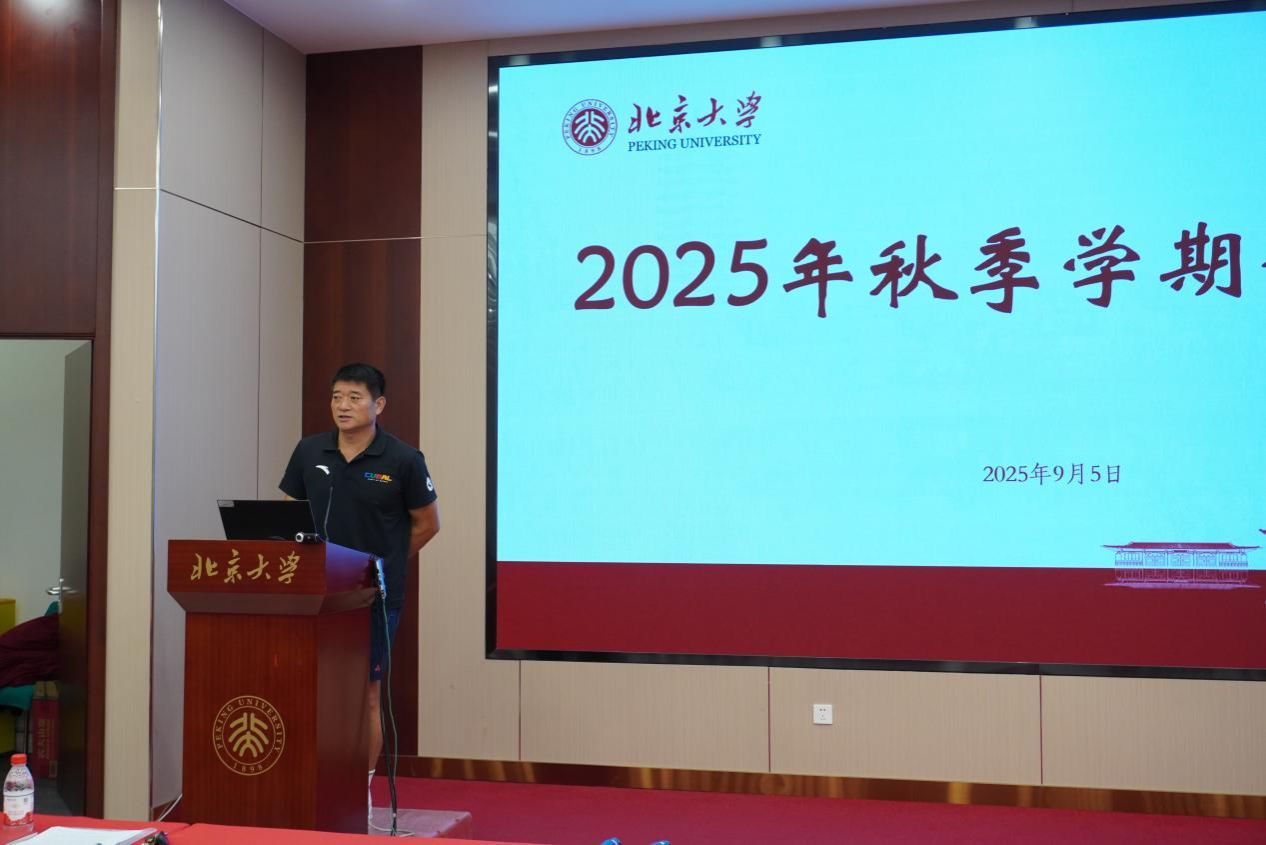 体育教研部副主任郑重作工作汇报,他首先介绍高水平运动队的假期训练情况和竞赛成绩,今年,北大成为中国历史上第一所两次夺得CUBAL双冠王的高校,田径队获得多个全国比赛的冠军,其他队伍也屡获佳绩。紧接着,他分享了体育教育专业的招生入学情况以及专业培养方案的调整工作。