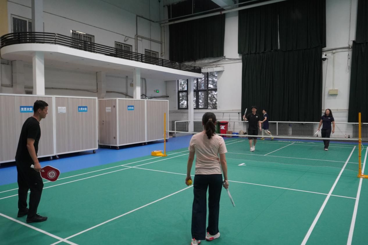 全体会结束后,所有教师移步到五四体育中心羽毛球场,进行新学期的第一次集体备课。本次备课活动以匹克球运动为主题,由刘茂辉老师带领大家进行。