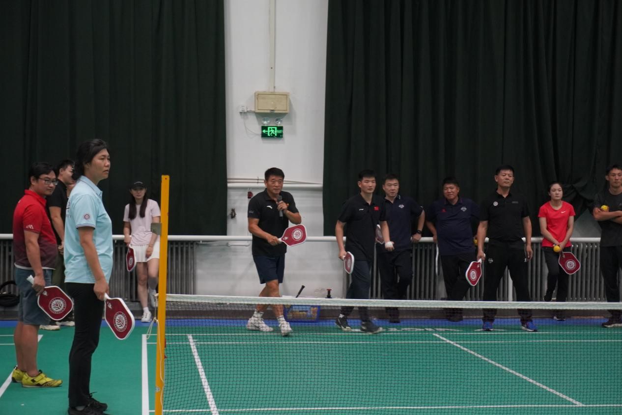 联系完毕后,教师们开始进行正式的匹克球比赛,老师们积极发球、主动接球,在互相配合中锻炼了身体的协调能力,进一步增强了北大体育人的团队凝聚力。最后,每位老师领取了一枚球拍和一个匹克球作为纪念,大家一起合影留念,本次集体备课圆满结束。相信在今后的日常运动和课堂教学中,这项运动会推动大家对体育的热爱,助力师生强健体魄、收获快乐。