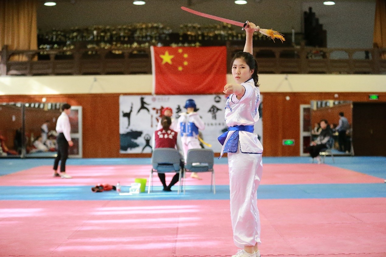 器械套路有八卦刀、朴刀进枪、太极剑、自选棍术等,正所谓“刀枪剑棍”等十八般武艺样样俱全,其中留学生安迪的自选刀术脱颖而出,获得器械组第一名。