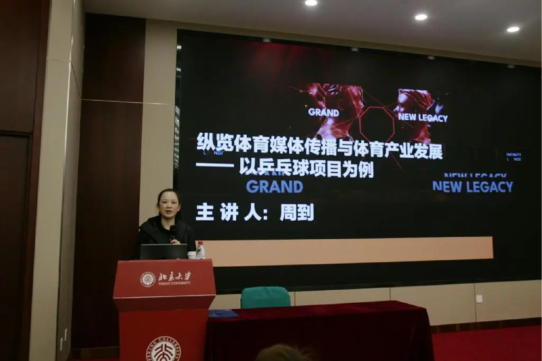 为帮助学生夯实理论基础,创造实践机会,提升实践能力,激发探索热情,北京大学体育教研部于2024年3月启动行业导师系列讲座。3月22日下午,国际乒联亚洲媒体主管、 WTT世界乒联中国媒体总监周到女士来到北京大学五四体育中心205多功能厅,带来题为“纵览体育媒体传播与体育产业发展——以乒乓球项目为例”的讲座。体育教研部党委书记陈征微、教授董进霞等四十余位师生参加,本次讲座由体育教研部副主任吴飞主持。