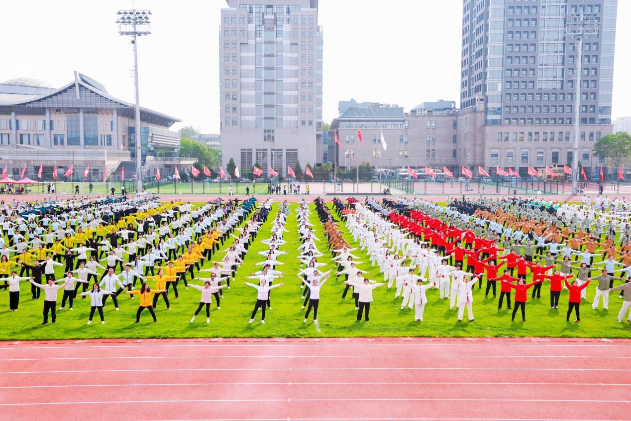 来自各院系(所中心)、各部门的1500余名教职工共同进行了精彩的八段锦团体操表演,他们动作整齐划一,时而如行云流水般舒展,时而似惊涛拍岸般有力,充分展现了北大人团结奋进、锐意进取的精神风貌。