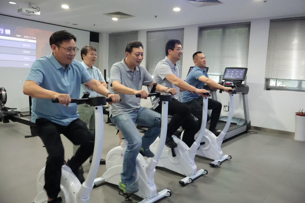 座谈会结束后,上海体育大学一行来到北大智慧健康驿站,体验了数字体育设备,并参观了邱德拔体育馆主赛场、健身房、篮球场、游泳馆等区域。