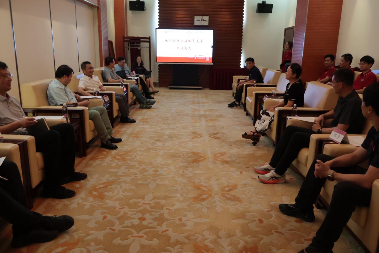 下午2时,座谈交流会在邱德拔体育馆120贵宾室举行。魏建军介绍了来访人员,他表示,此次交流座谈旨在学习北大体育场馆建设,组织管理架构及信息化技术等先进经验。钱俊伟向上海体育大学代表团表示热烈欢迎。