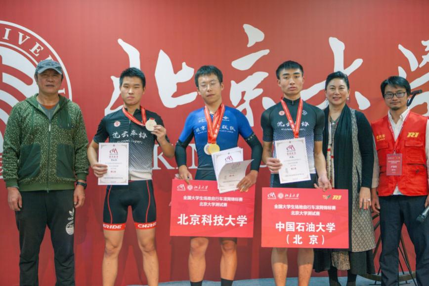 比赛最终圆满结束,下午4点,进行了颁奖仪式,大自协秘书长张锐教授,以及仲裁长中国劳动关系学院赵子江教授,和兼任颁奖仪式的大自协常务副秘书长卢福泉老师,给获奖选手颁奖。个人计时赛含金量最高的金牌,男子和女子个人综合和个人体能,分别被来自中国石油大学(北京)的彭文博和北京科技大学的安奕韦,以及中国科学院大学的俎红叶和中国矿业大学的赵紫璇获得。他们将获得JAKROO定制的象征荣誉的红色“冲刺王”和绿色“全能王”骑行服。团体项目含金量最高的金牌,男子和女子10公里接力,被中国石油大学(北京)一队和北京大学骑实很简单队获得。团体总分前三甲,东道主北京大学积分116,获得团体冠军,中国石油大学,获得亚军,总积分65,中国矿业大学(北京)积45分获得铜牌。11个项目男女前三甲请参见附录。