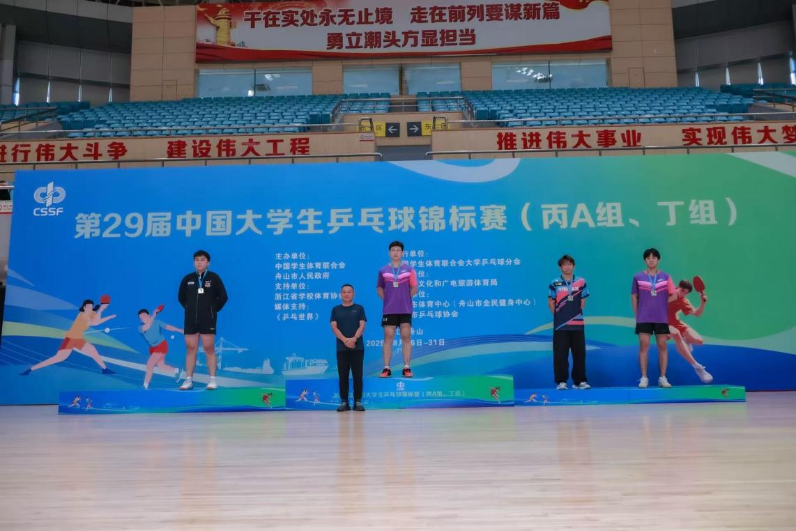 2025年8月26日至31日,第29届中国大学生乒乓球锦标赛(丙A组、丁组)在浙江省舟山市体育馆隆重举行。本次比赛由中国学生体育联合会、舟山市人民政府主办,中国学生体育联合会大学乒乓球分会执行,舟山市文化广电旅游体育局承办,舟山市乒乓球协会、舟山市体育中心协办。来自全国30所大学的运动员参赛,围绕丙A组、丁组2个组别进行男子团体、女子团体、男子单打、女子单打、男子双打、女子双打、混合双打七个项目展开激烈角逐。